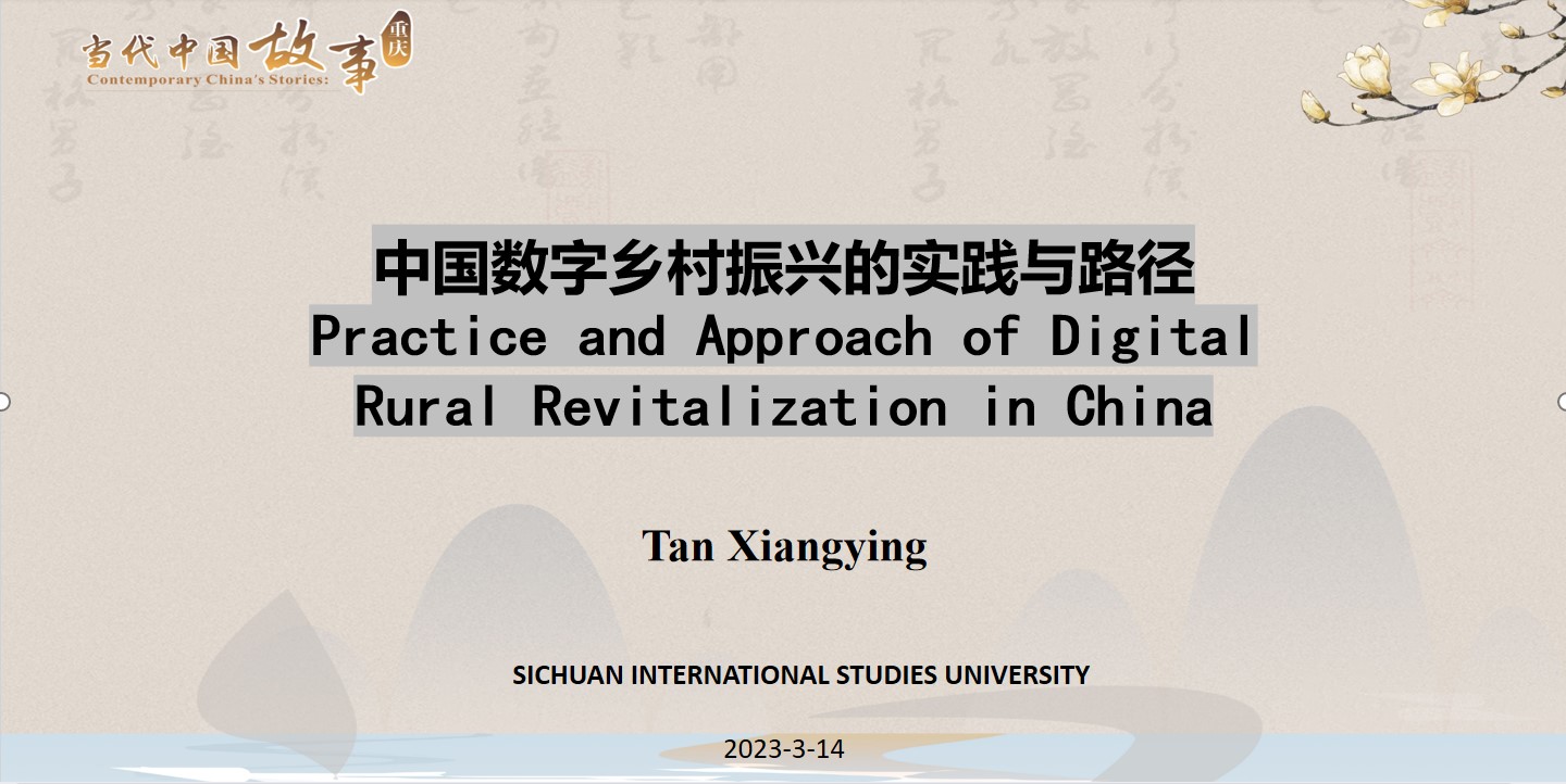 “各美其美,美人之美,美美与共,天下大同”。向世界讲好中国故事,让世界体会中国深厚底蕴与博大精深;展示中国多元文化,以期加强彼此交流合作,共创美好未来。2023年3月14日下午,“缙云知华”大讲坛专家讲座第十四期在四川外国语大学成功举办,主题为“中国数字乡村振兴的实践与路径”,由四川外国语大学国际法学与社会学学院副教授谭湘颖老师主讲。讲座以线下线上结合的形式展开,四川外国语大学和其他高校学生共计200余人参加讲座。