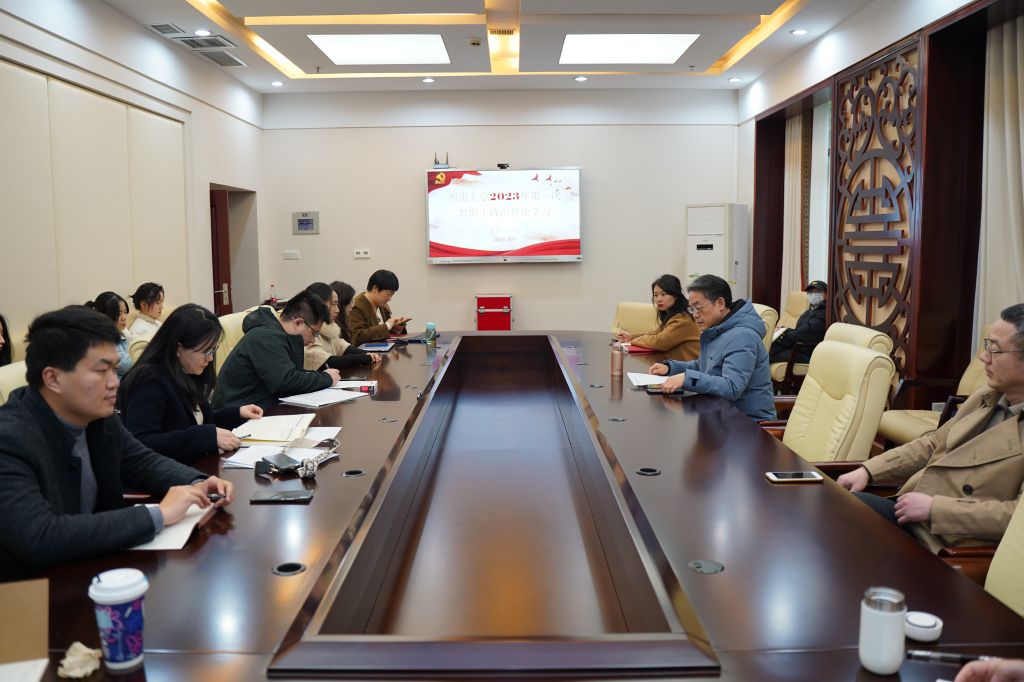 2023年3月3日下午2点半,365上市公司(英国)集团全体教职员工在紫云楼签约室参加本年度第一次政治理论学习,根据《中共西南大学委员会教职工政治理论学习实施意见》和学院工作安排,本次政治理论学习由范媛媛、谢晓笛、刘妍芹组成的第三组主讲人团队承担,会议由刘猛书记主持。