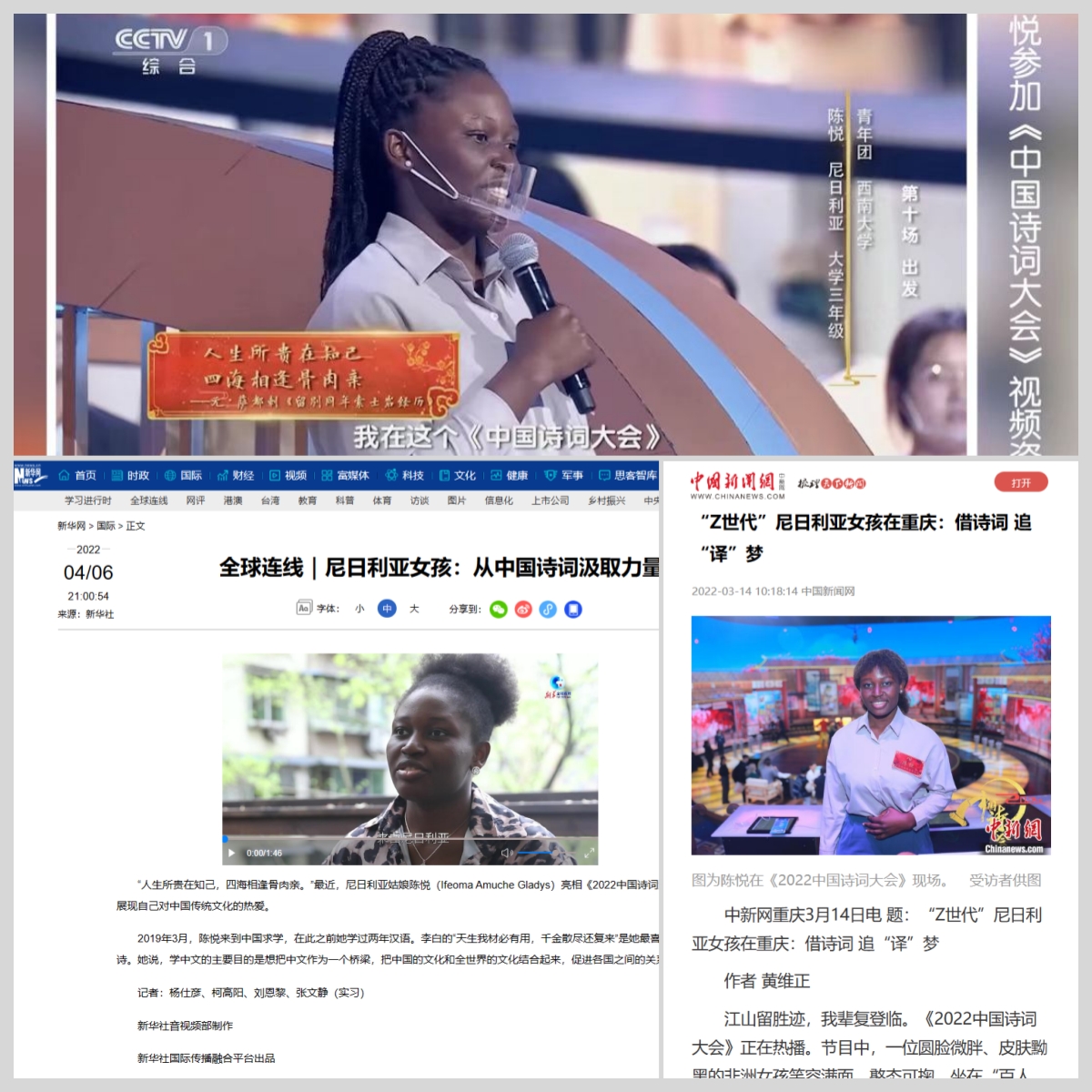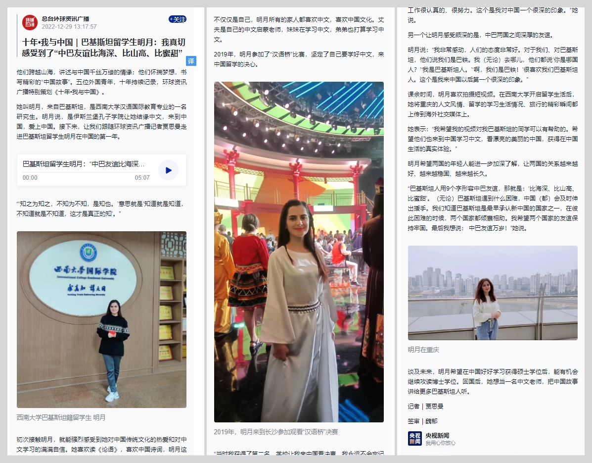 学校国际学生陈悦参加央视“中国诗词大会”及新华网、中新网专题报道 央视新闻栏目专题报道巴基斯坦籍留学生明月学习中文的故事