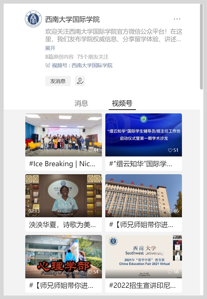 10. 宣传工作有声有色。学院官网、官微和视频号积极宣传报道党建工作和事业发展,推出“踔厉奋发党员行”先锋岗优秀事迹系列报道5期。全年发布新闻稿、推文254篇,短视频7条,浏览量合计704859次。新华社、中国新闻网等主流媒体专题报道尼日利亚籍留学生陈悦学习中国诗词的事迹,央视新闻栏目专题报道巴基斯坦籍留学生明月学习中文的故事。