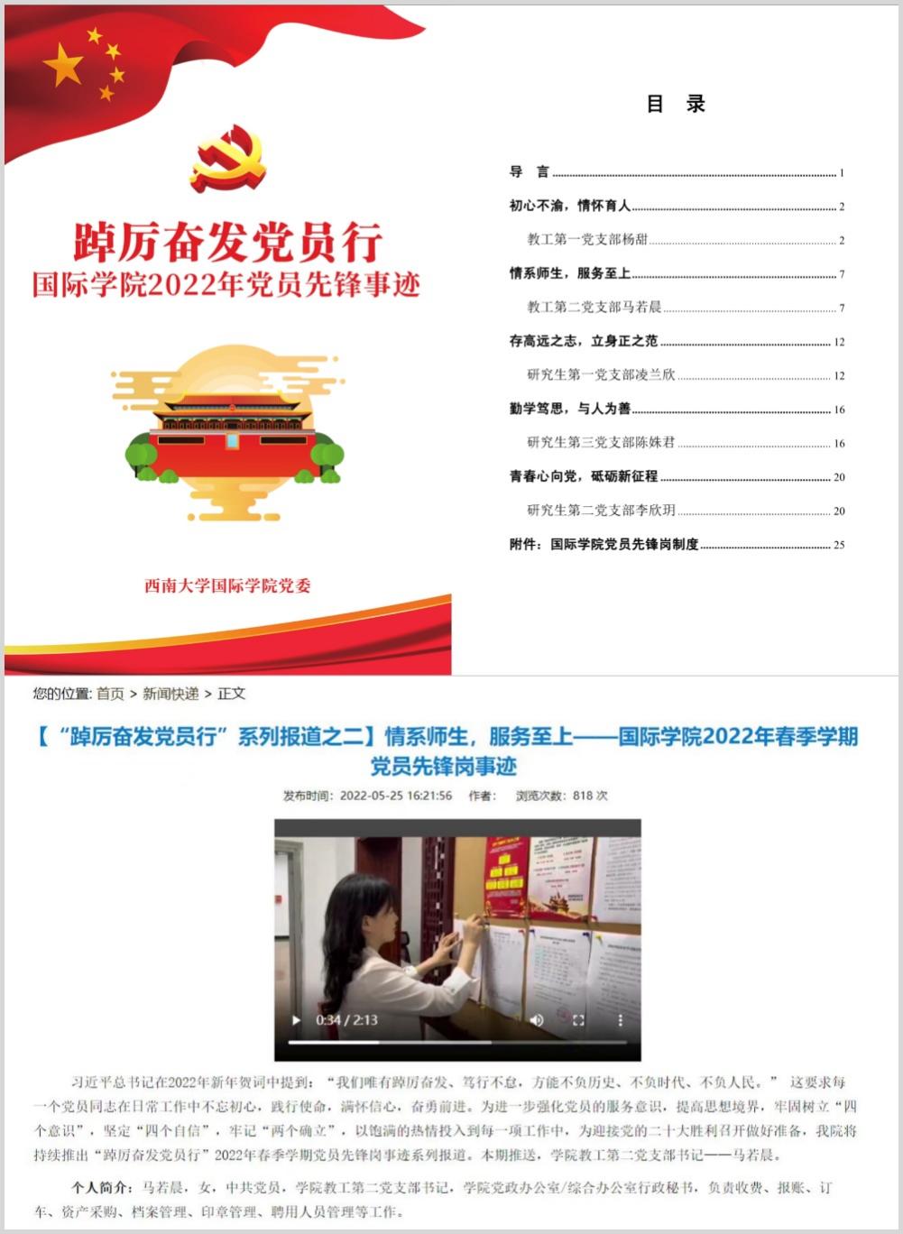 “踔厉奋发党员行”先锋岗优秀事迹系列报道网站截图 学院官微和视频号截图