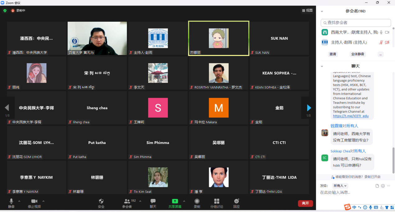 据悉,本次柬埔寨专场是由汉考国际组织的系列教育展之一,也是继俄罗斯专场之后,学校今年参加的第二场汉考国际主办的线上招生宣讲会,12月中旬学校还将继续参加泰国站宣讲。