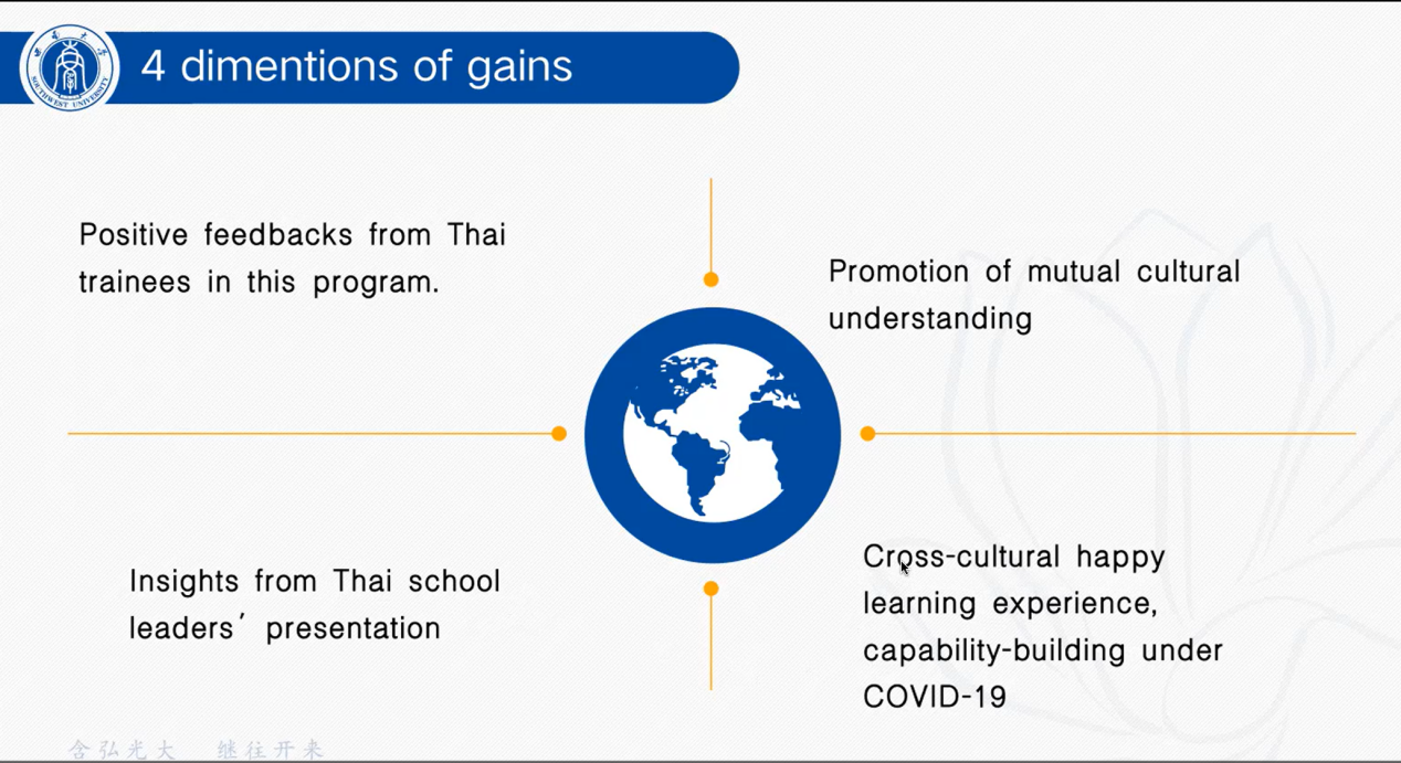 钟婉娟副教授就本次培训的前期筹备、实施过程、培训成果等做总结。表示,此次培训项目共有四个方面的收获:一是收获了泰方学员对于项目学习内容的积极评价;二是促进了中方授课教师及重庆中小学校长对于泰国教育实践的进一步理解;三是加深了双方文化交流与理解;四是提升了西南大学项目培训团队在疫情期间进行跨文化在线全英文实施培训项目的能力。强调,此次项目的圆满成功得益于学校与泰国NIDTEP双方领导的高度重视,得益于项目授课团队专家的高质量教学及项目支持团队成员专业的项目服务。