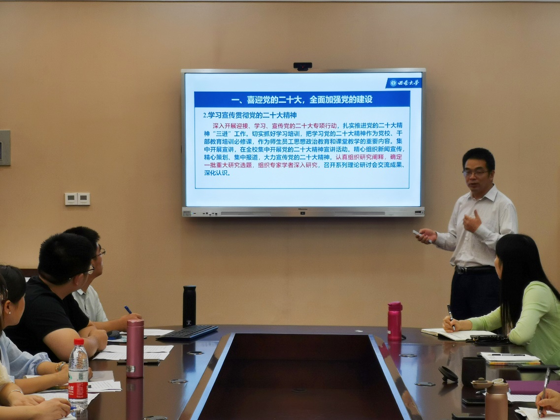 根据《中共西南大学委员会教职工政治理论学习实施意见》和学院的工作安排,本次政治理论学习由以翟二猛、冯换叶、王鹊、黄无为组成的第9组主讲团队承担。