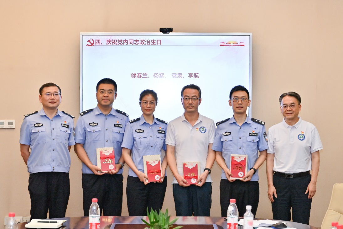 在为6-7月入党的同志过政治生日时,张攀总队长和刘猛书记送上政治生日礼物,表达真诚祝福和热切期望。