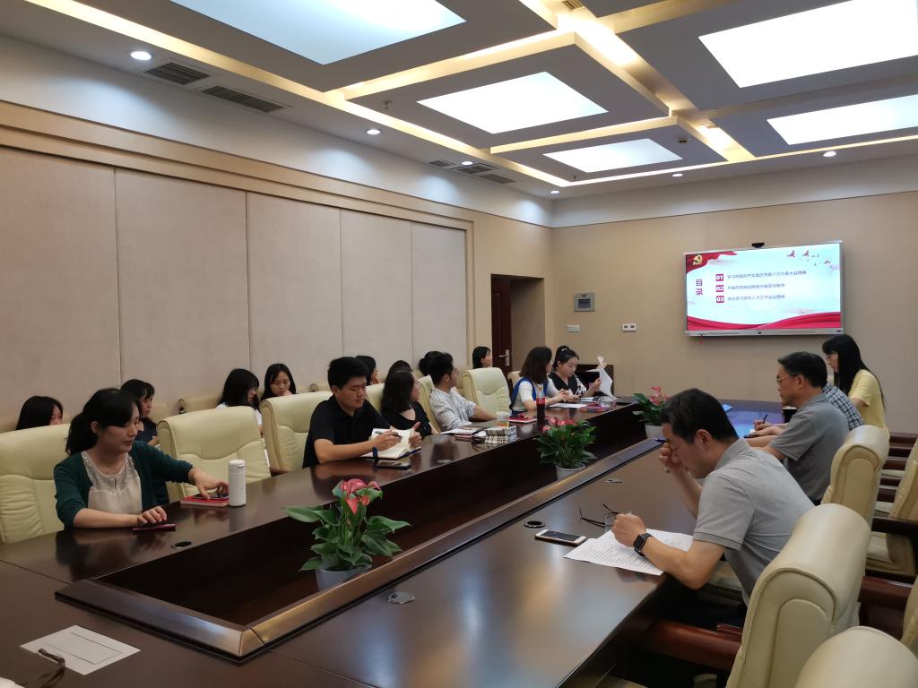 陈晨同志通过播放视频和重点解读,导学中国共产党重庆市第六次代表大会精神。杨凌霄同志通过播放反电信网络诈骗微视频,开展集知识性和趣味性为一体的防范电信网络诈骗宣传教育。刘燕妮同志传达学习学校人才工作会议精神。邹育艳同志就几位同志的导学进行点评。