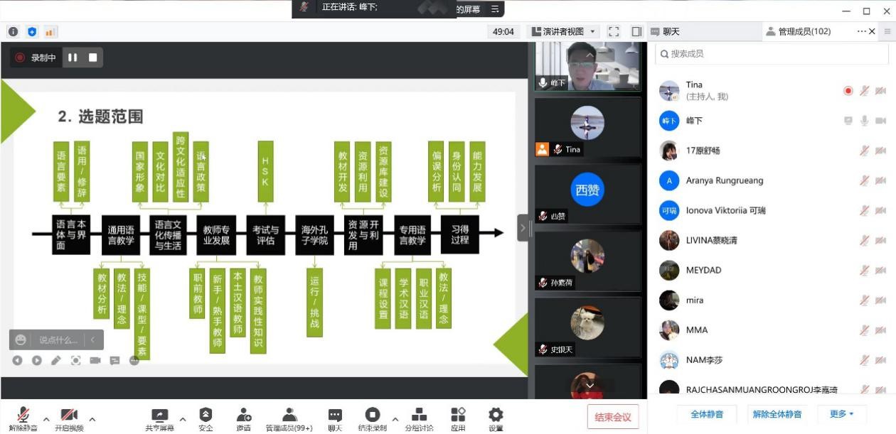 2022年5月30日晚,缙云知华大讲坛第十三期学术沙龙通过腾讯会议在线上举办。华东师范大学舒敬斌博士受邀主讲,教师代表、汉语国际教育中外硕士研究生100余人参加。讲座由学院汉语国际教育系主任杨甜副教授主持。