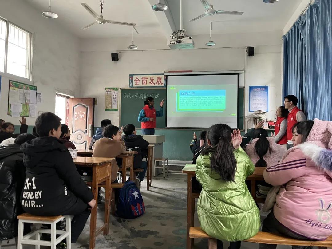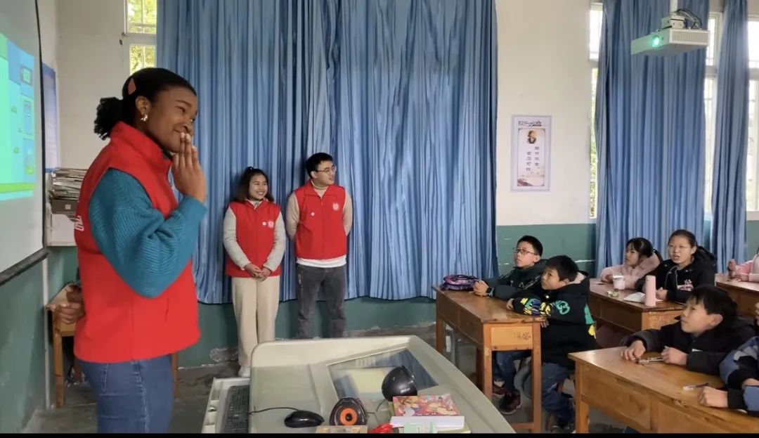 周颖:这是我第一次参加支教,第一次给小学生介绍自己国家的文化,我很担心孩子们会因为我是外国人而不敢和我交流。可当我正式上课时,孩子们却比我想象得活跃,他们不仅不会害羞,还会主动地问我许多问题,这让我很诧异也很触动。以往我在介绍自己国家的文化时,总有人分神,可是孩子们不一样,从我站上讲台到课堂结束,他们全神贯注,聚精会神,下课还会围着我问好多关于我们国家的问题。回去的路上,我总不自觉想起课堂上孩子们眼里闪动的光。