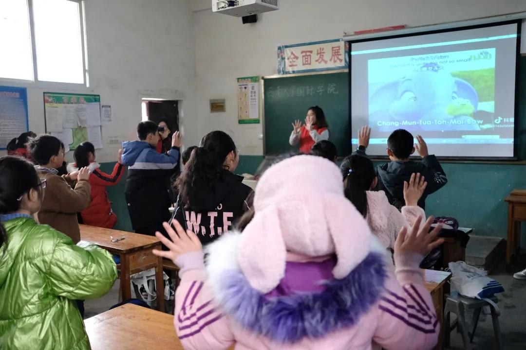 孙素荷:虽然之前就参与过学院的社会实践活动,但出发前的晚上,我还是感觉忐忑。我在想,我来自泰国,孩子们会不会因为觉得陌生而不太愿意和我互动呢?然而让我感到惊讶的是,当我和孩子们说我来自泰国时,他们热情地说“萨瓦迪卡”让我非常感动,不仅课堂上积极和我互动,甚至下课还会拉着我打羽毛球。这次实践活动,我被当地老师坚守的精神打动,被孩子们童真的眼神打动,这让我更加坚定成为一名小学教师的理想。