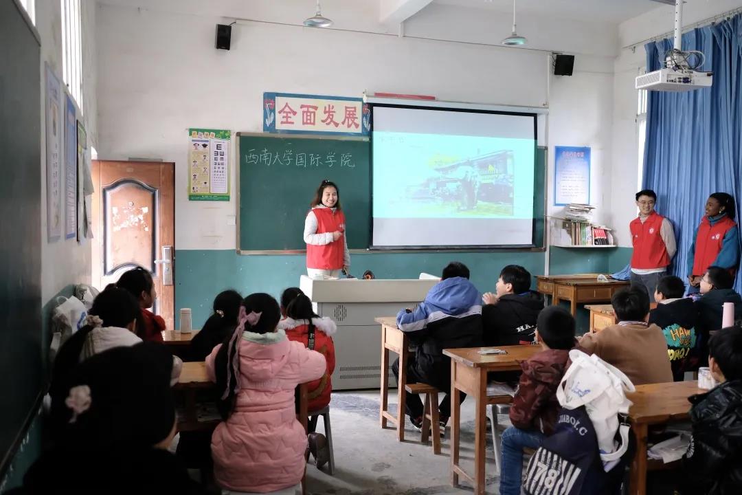 村口的老树,布满青苔的台阶,泥泞崎岖的山路就是山村孩子能见到的全部风景,由国际学生主讲的国际视野课旨在带领孩子们感受不同国家的风土人情的同时,激励孩子们那股奋发向上,走出大山的决心。