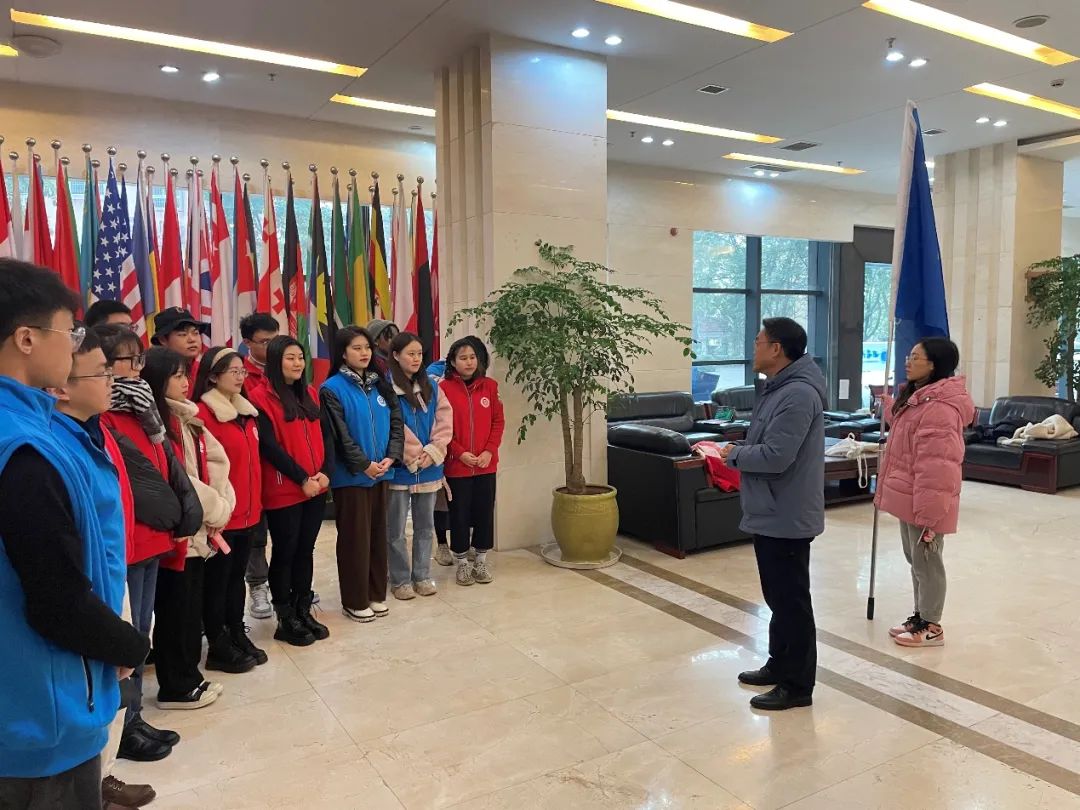 出发在即,学院党总支书记刘猛为本次社会实践队授旗,并展开动员讲话。刘书记表示:正所谓读万卷书不如行万里路。社会实践是汉语国际教育专业的重要环节,也是特殊的学习方式。因此在实践过程中,希望同学们能够虚心学习,多多请教当地的老师及村民,在活动中有收获有体会。同时还要积极配合学院,团结协作,注意安全。最后刘书记预祝本次实践活动圆满成功,不负使命完成任务!