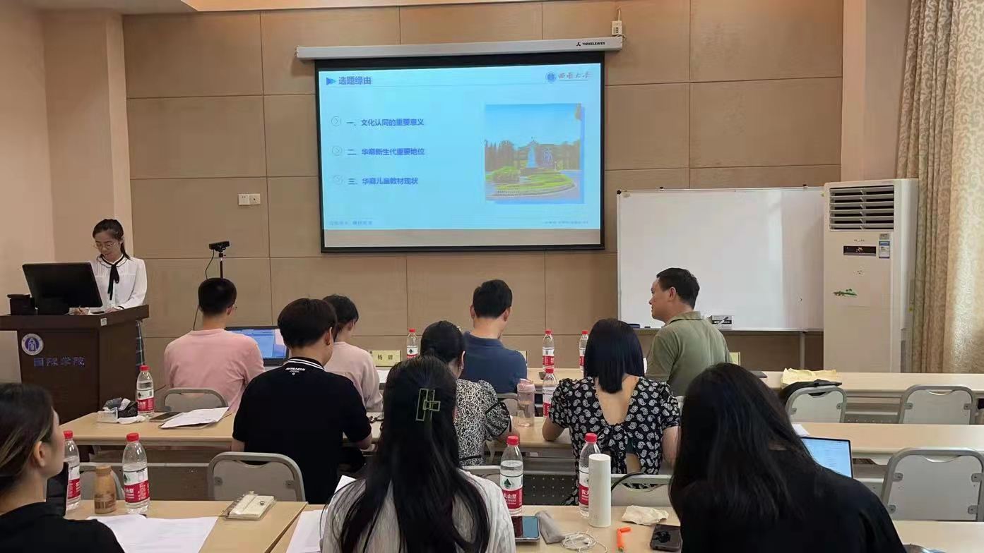 2021年7月6日,学院在紫云楼310室和312室举行2019级汉语国际教育硕士研究生毕业论文开题报告会。除线下参加的17名同学外,还有12名同学在线上通过钉钉直播的方式远程参与了开题报告会,2020级汉语国际教育硕士中国班全体同学旁听学习开题报告会。