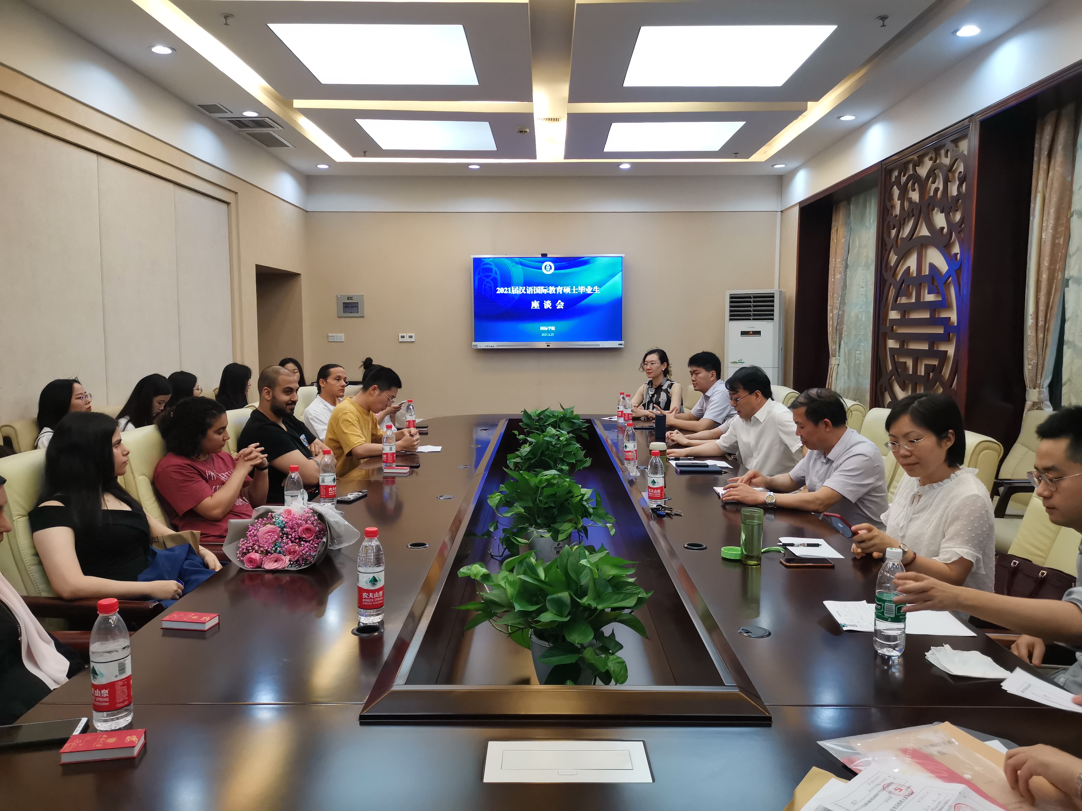 2021年6月25日下午,365上市公司(英国)集团在签约室召开了2021届中外汉硕毕业生座谈会。学院领导,学工办、教学办、汉教系等部门负责人,研究生导师代表和30余名中外汉硕毕业生参加座谈交流。