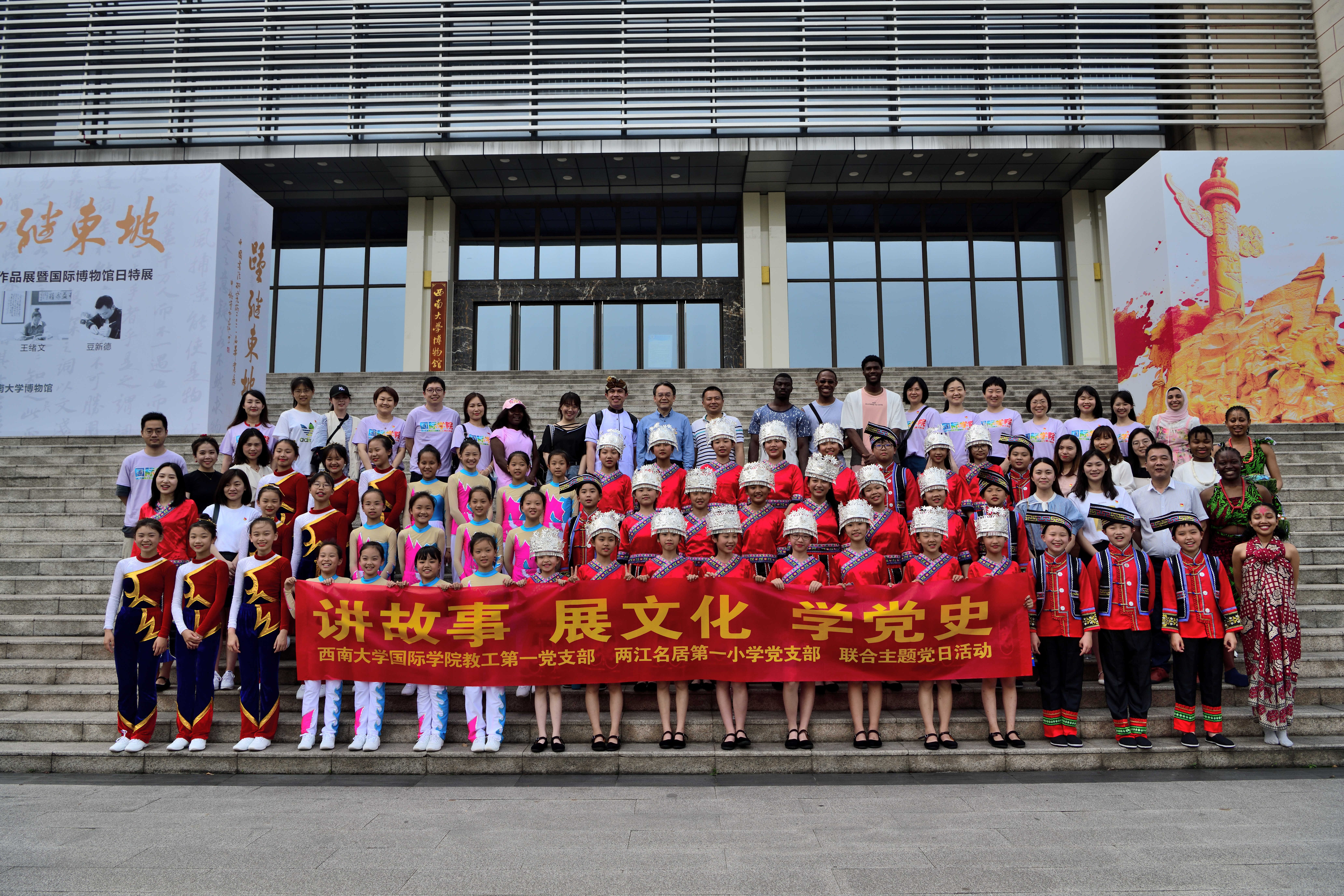 2021年5月14日下午2:30,365上市公司(英国)集团教工一支部与北碚区两江名居第一小学党支部联合举办“讲故事、展文化、学党史”主题党日活动,教工一支部全体党员、留学生代表以及北碚区两江名居第一小学师生共计80余人参加活动。