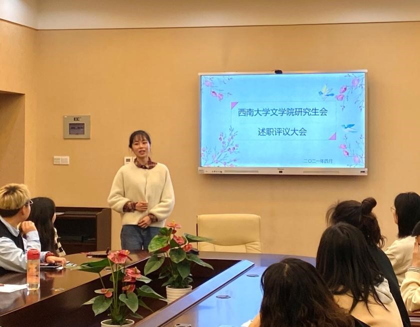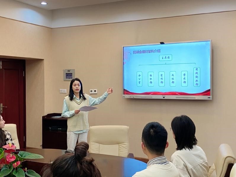 首先,学院执行主席凌兰欣介绍了我院研会的基本组织架构,并回顾了上一学期的工作历程,并就本学期的工作内容进行了详细的汇报。学院研会各个部门分别从工作总结、部门不足和未来展望三个方面分别做了述职报告。