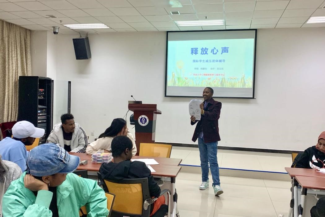 学校高度重视国际学生的心理健康教育,2019年与心理学部合作共建“国际学生心理服务中心”,2020年通过“贯通式心理育人平台”实现了中外学生心理健康教育工作的趋同,此次在学校心理健康教育服务中心阳光心理驿站的支持下,开展了境内国际学生的减压团辅活动,也是后疫情时代国际学生心理健康教育的一次成功尝试。