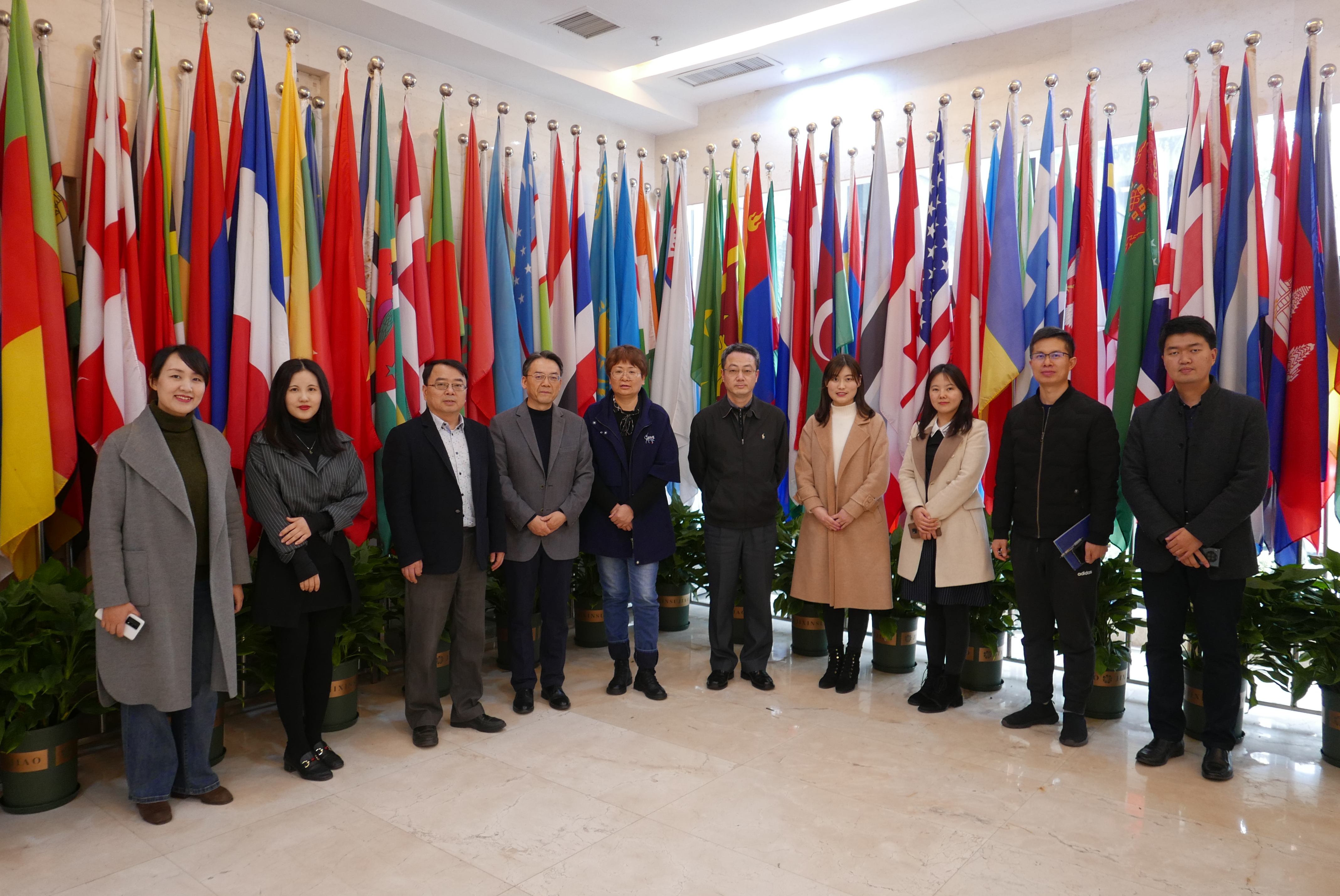 座谈会前,刘猛书记和学院参会领导等人与来访客人在紫云楼大厅合影留念。