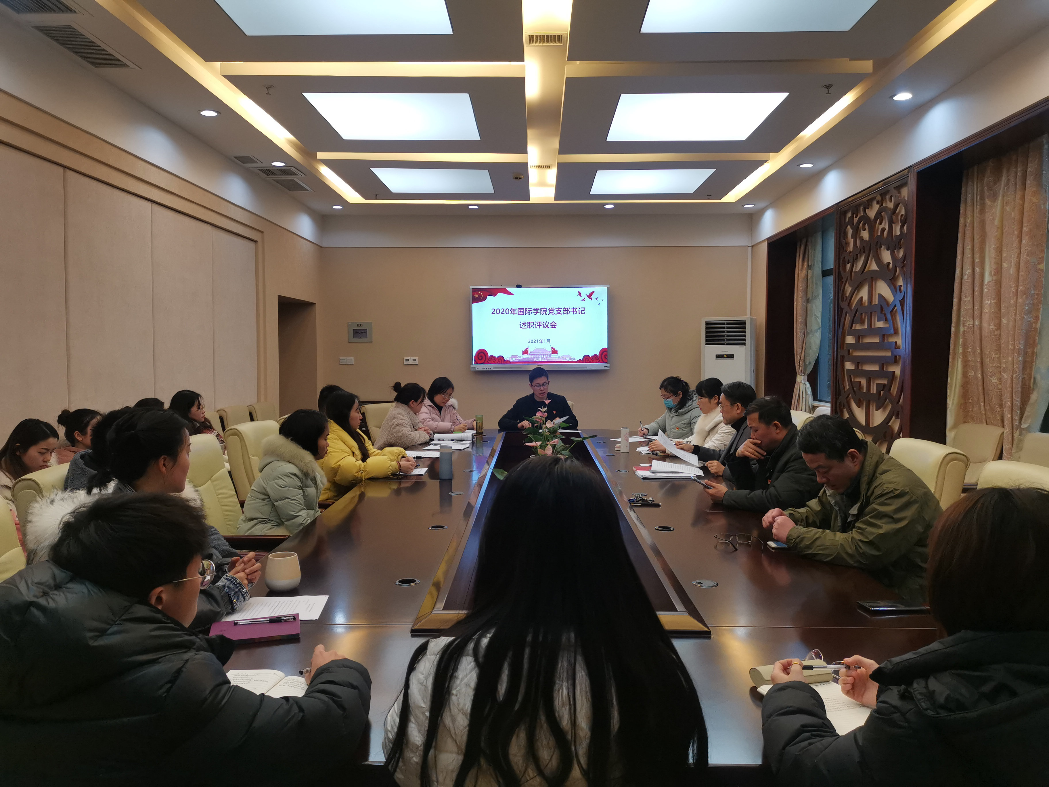 2021年1月15日下午17:00,365上市公司(英国)集团党总支在紫云楼签约室举行2020年度支部书记抓基层党建述职评议考核会。学校组织部代表、学院党总支委员、各支部书记以及党员和群众代表等22人参加本次会议。会议由党总支书记刘猛同志主持。