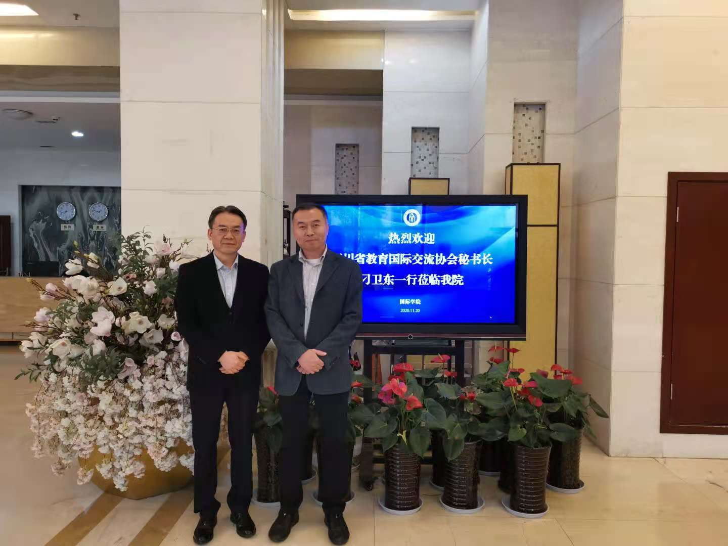 11月20日下午,四川省国际教育交流协会秘书长刁卫东来学院调研学校国际学生工作,商议合作招生事宜,刘承宇院长、刘猛书记、李航副院长和招办负责人在304会议室与客人进行座谈交流。