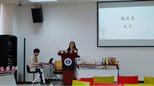 首先是辅导员讲话环节,汪鑫阳老师发表讲话,表达了对新同学的欢迎以及对未来三年学习生活的希冀,从多方面对班级建设提出了要求。