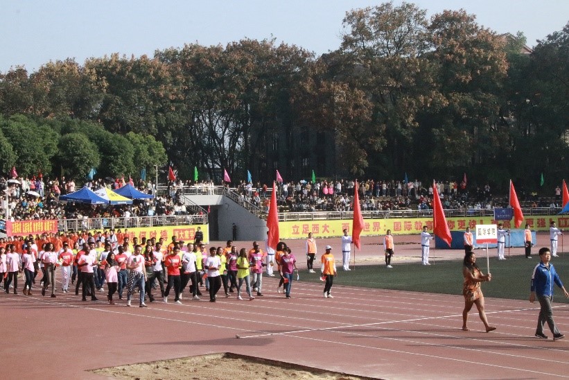 运动会于上午八点三十分在第二运动场准时开始,各学院代表方队依次入场,学院方队压轴登场。列队完毕后,各方队开展“阳光健身跑”活动,从第二运动场跑步行至第四运动场并合影留念。活动结束后,各比赛项目正式拉开帷幕。