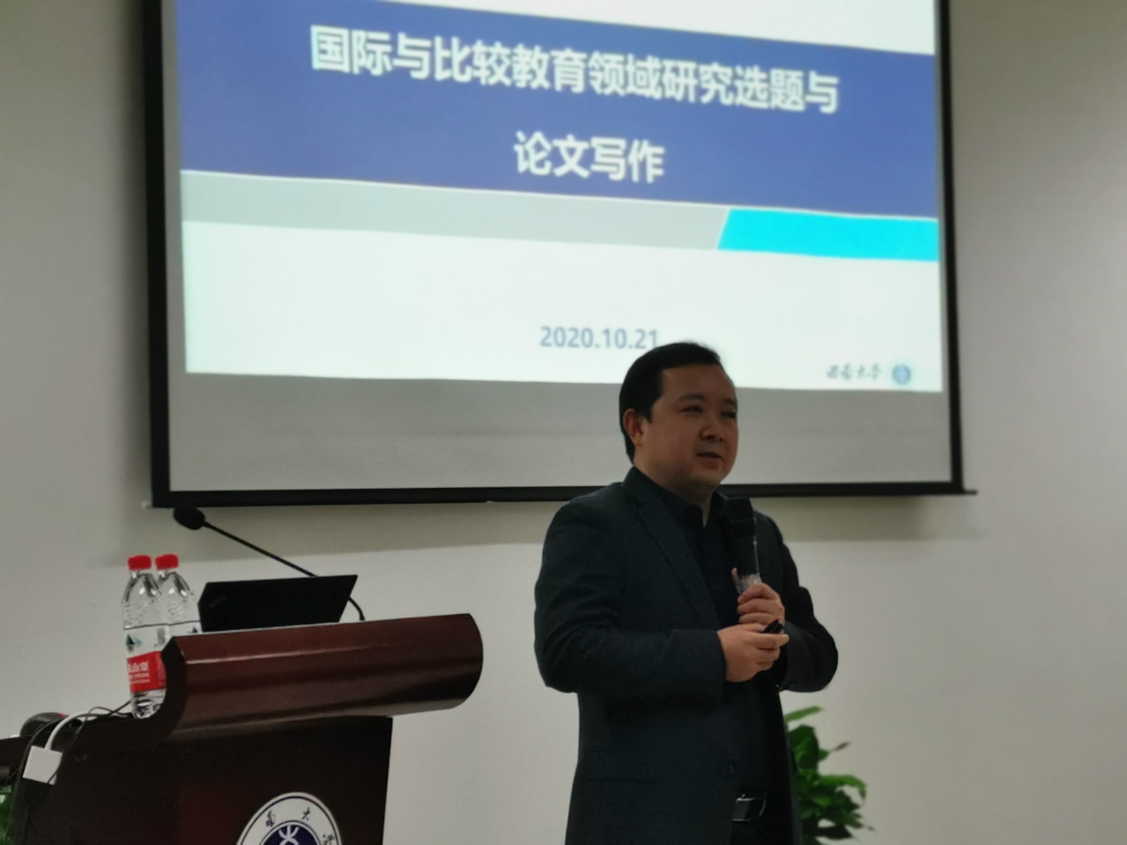 王正青教授围绕如何进行论文选题、如何搭建论文框架、如何做好文章论证、如何查找和阅读一手文献、如何遵循论文写作的学术规范等五个方面,结合自己的论文写作与发表经历,深入浅出的分享了国际与比较教育领域的研究选题与论文写作经验。在最后三十分钟的交流环节,来自365上市公司(英国)集团和教育学部的博士和硕士研究生踊跃发言,提出了“如何提高投稿的中稿率”“如何处理国内外文献资料阅读中的信息差”“怎样扎根一个有价值的选题进行长期而深入的研究”等问题,同侪之间进行了深入而充分的探讨,王正青教授也针对同学们的困惑进行了细致而专业的点评与解答。