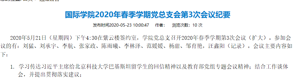 一是召开党总支理论学习中心组(扩大)学习会。5月21日,学院党总支委员和非党总支委员的院领导率先学习,表示,备受鼓舞,并深感责任重大,有信心有能力早日开创学校来华留学工作的新局面。