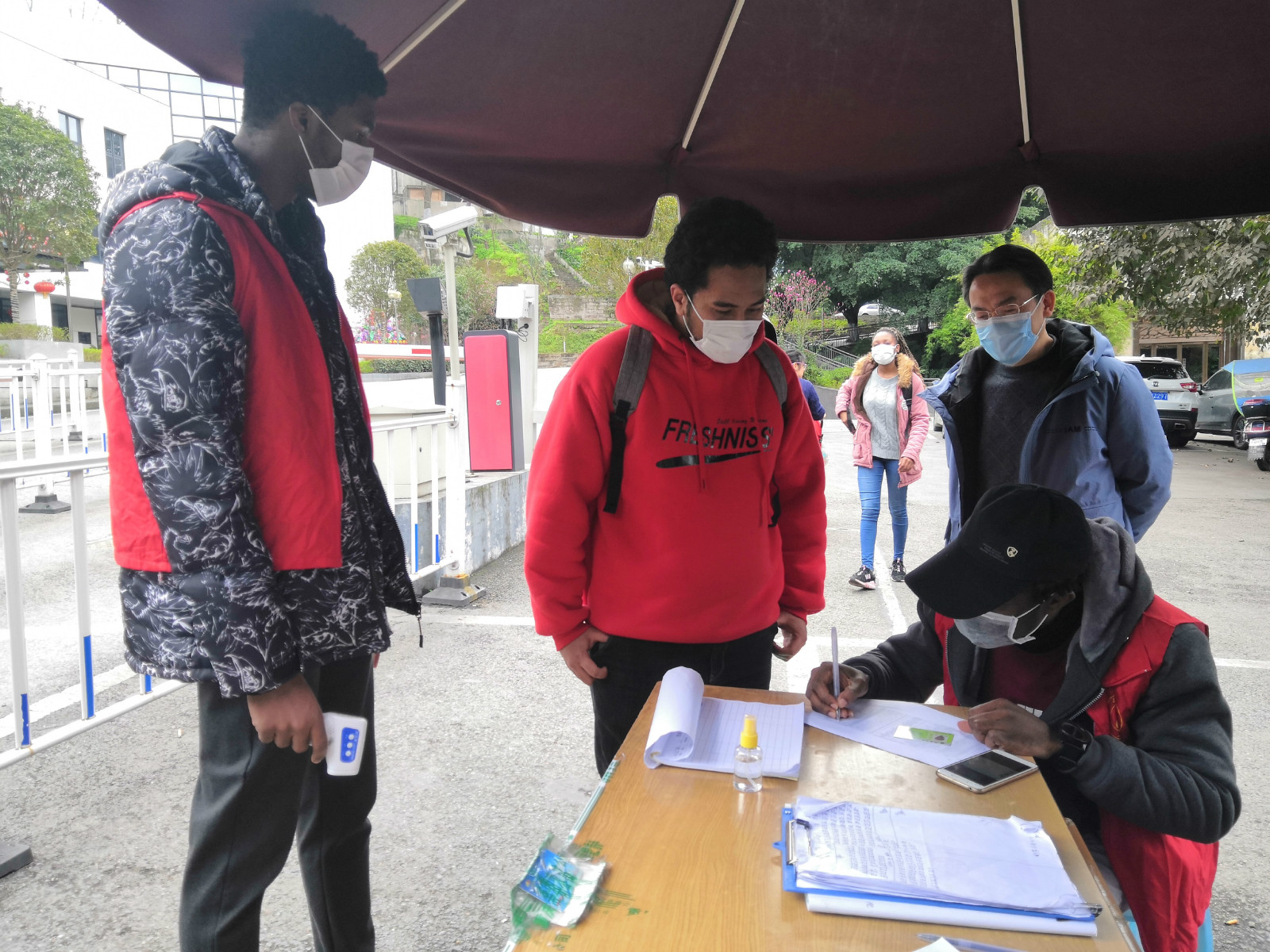 在这个特殊的时期,学校有200余名国际学生选择留在了重庆。学校对在校国际学生除了进行封闭管理、每日体温检测、学生信息摸排等一系列严格的管理措施外,还提供了定期发放口罩、开通心理热线、安排固定时段外出采购清真食品等人性化服务。“洋雷锋”志愿服务队的参与,给学校的抗疫工作增添了几分国际温情。