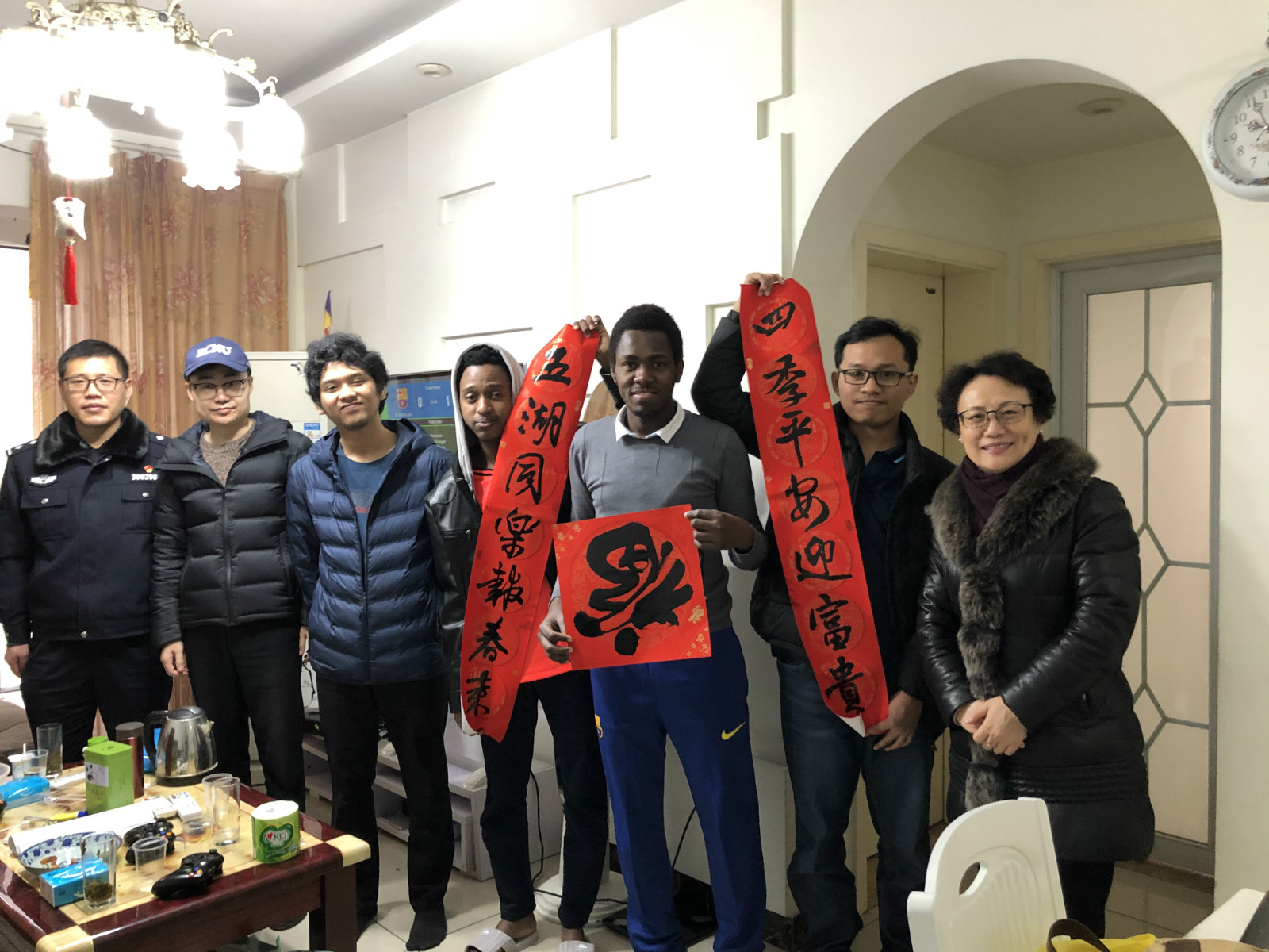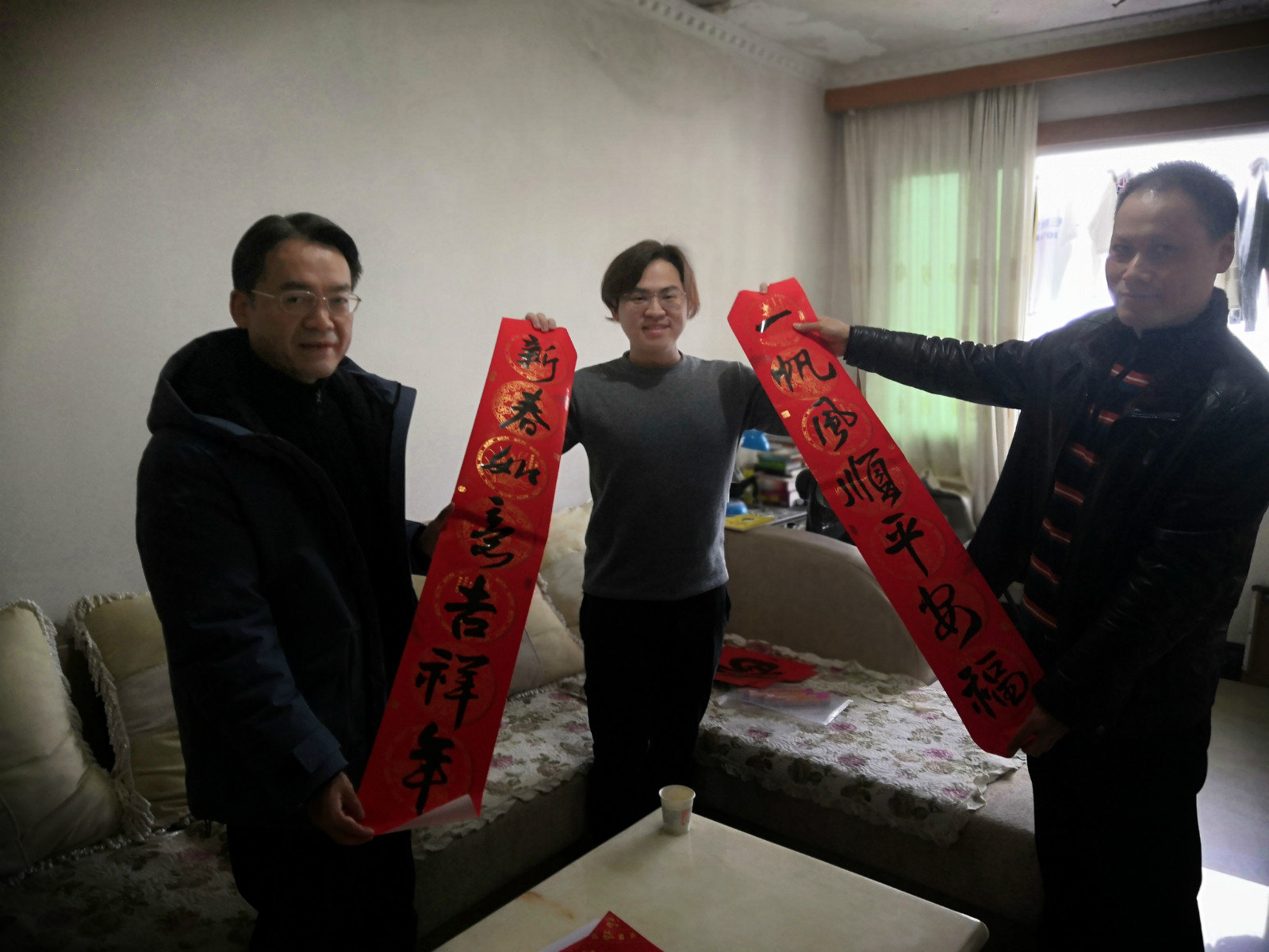 下午,学院领导分四组,挨家挨户看望租住在文星湾、天生桥、北碚老城区的留学生,给留学生带来新年的祝福和问候,送上具有中国特色的春联和福字,询问他们在寒假期间的学习、生活情况,嘱咐他们防寒保暖,多与家人联系,鼓励他们利用假期时间认真学习,来年取得更好的成绩。