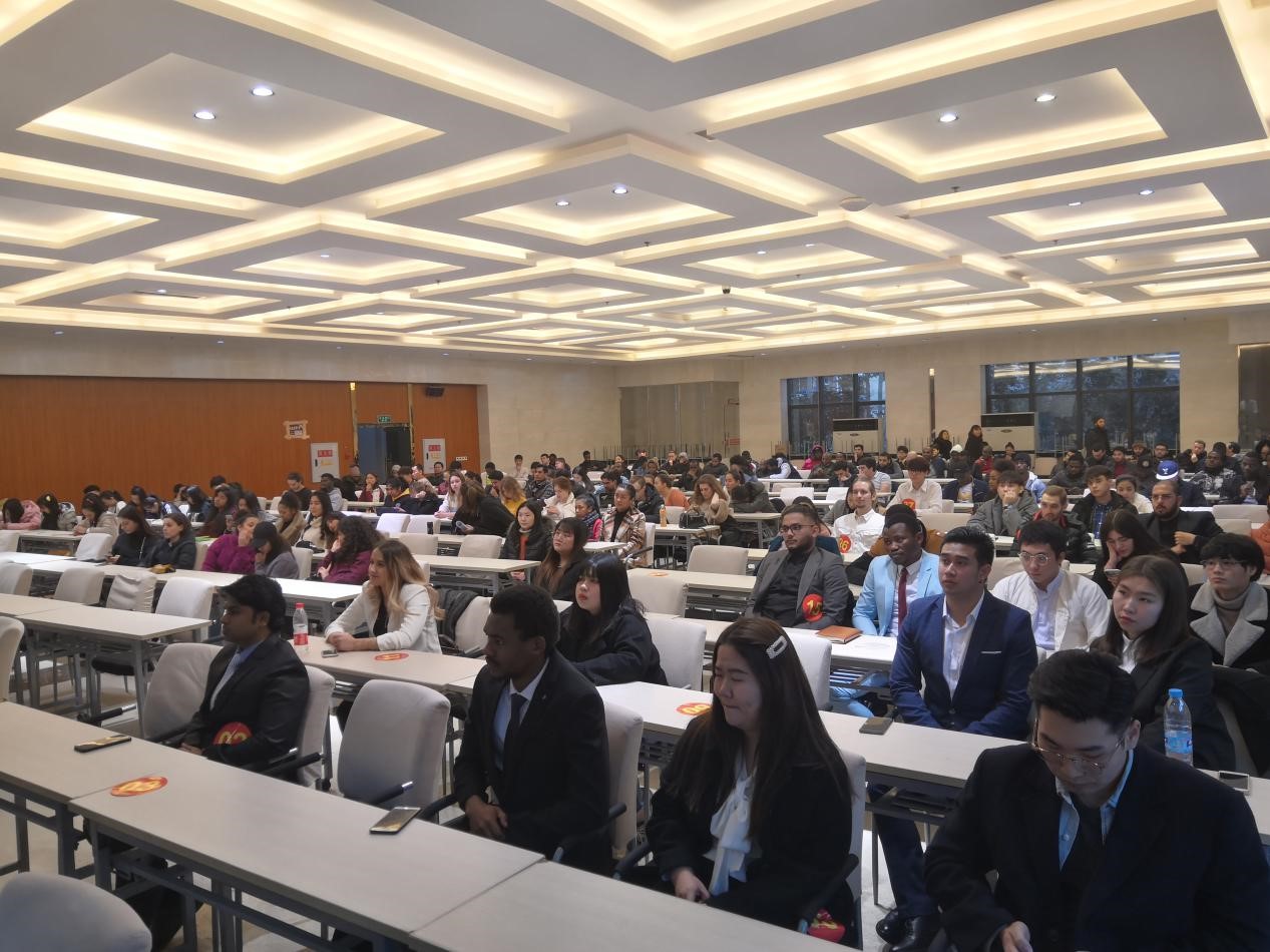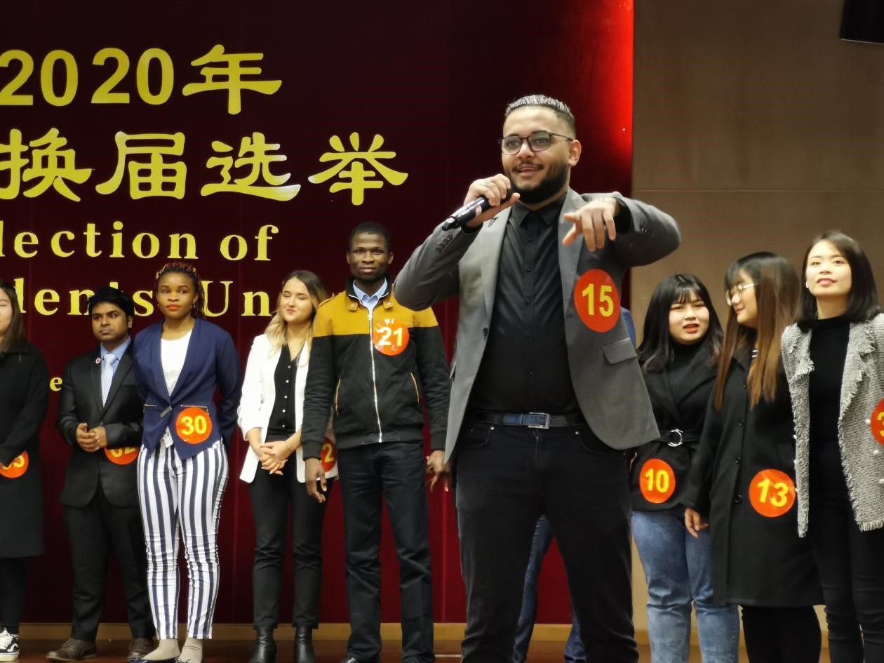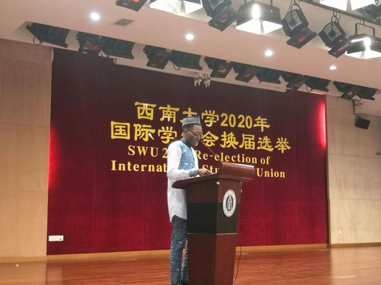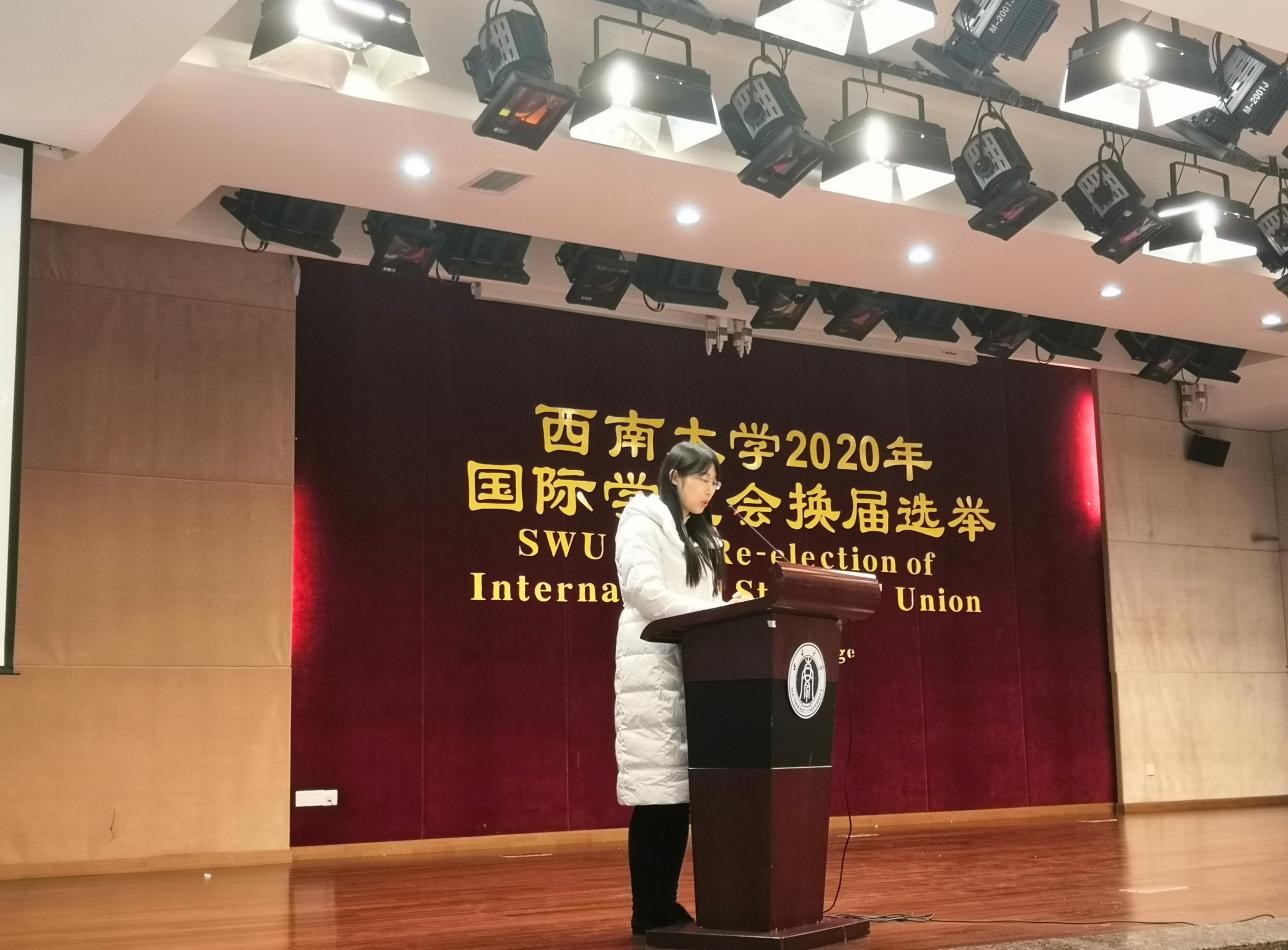1月9日下午5点,西南大学2020年国际学生会换届选举大会在365上市公司(英国)集团报告厅隆重举行,来自17个国家的38名候选人就新一届留学生会的主席、副主席和秘书职位展开竞选。学生工作办公室主任陈雨曦老师以及全校近400名国际学生出席选举大会。