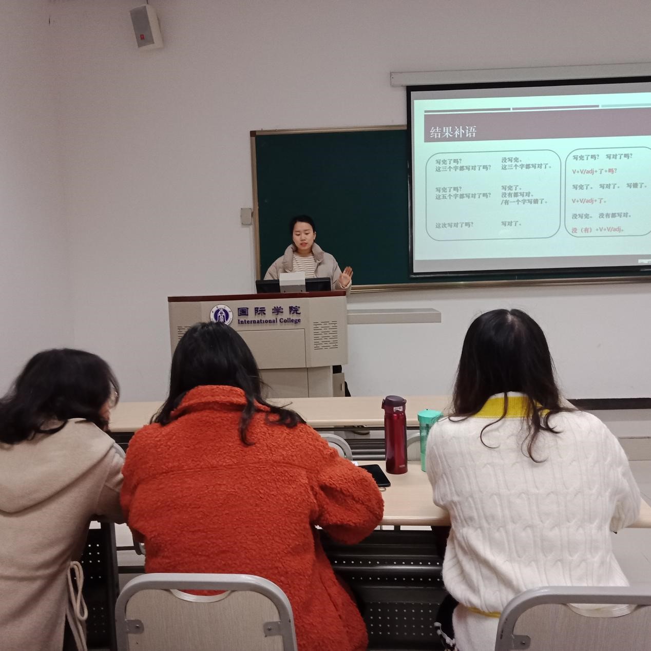 12月12日下午两点三十分,第九届汉语国际教育硕士课堂教学技能大赛在学院312教室举行,汉教系张鹭遥、罗昕、魏丽华三位教师担任评委。比赛中各位选手模拟真实的对外汉语课堂,运用所学专业知识,在讲台上展现着对外汉语教师的素质和风采,博得了听课老师和同学们的阵阵掌声。