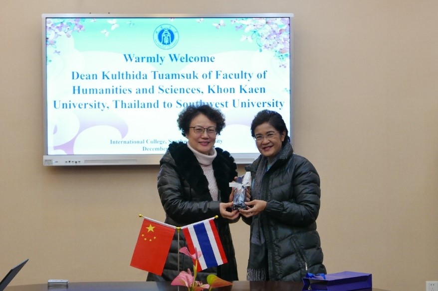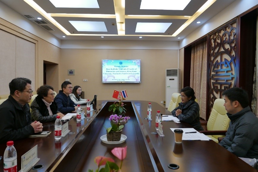 1220日,泰国孔敬大学人文学院院长Kulthida Tuamsuk教授一行二人来学院访问,院长王静、副院长李航及招办工作人员接待了来访客人,并就两校合作举行了会谈,会议由李航副院长主持。