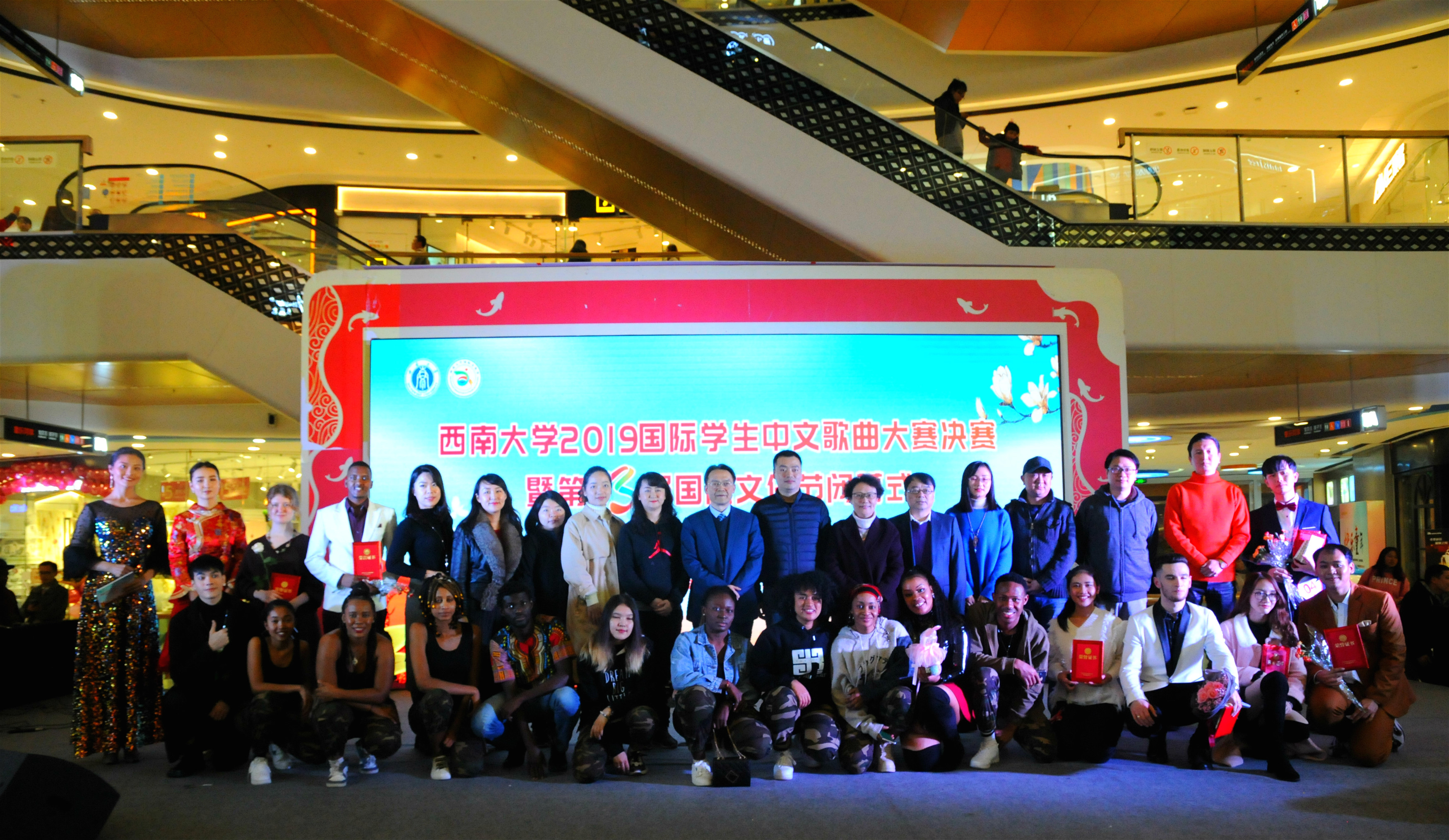 2019年11月23日晚7点,学校2019国际学生中文歌曲大赛决赛暨第13届国际文化节闭幕式在北碚万达广场举行。本次活动由365上市公司(英国)集团承办,音乐学院和北碚万达广场协办,得到北碚区委的大力支持。北碚区委宣传部副部长、网信办主任何波,北碚万达广场商业管理公司总经理吴琳,365上市公司(英国)集团和音乐学院的有关领导应邀出席大赛并为获奖选手颁奖。