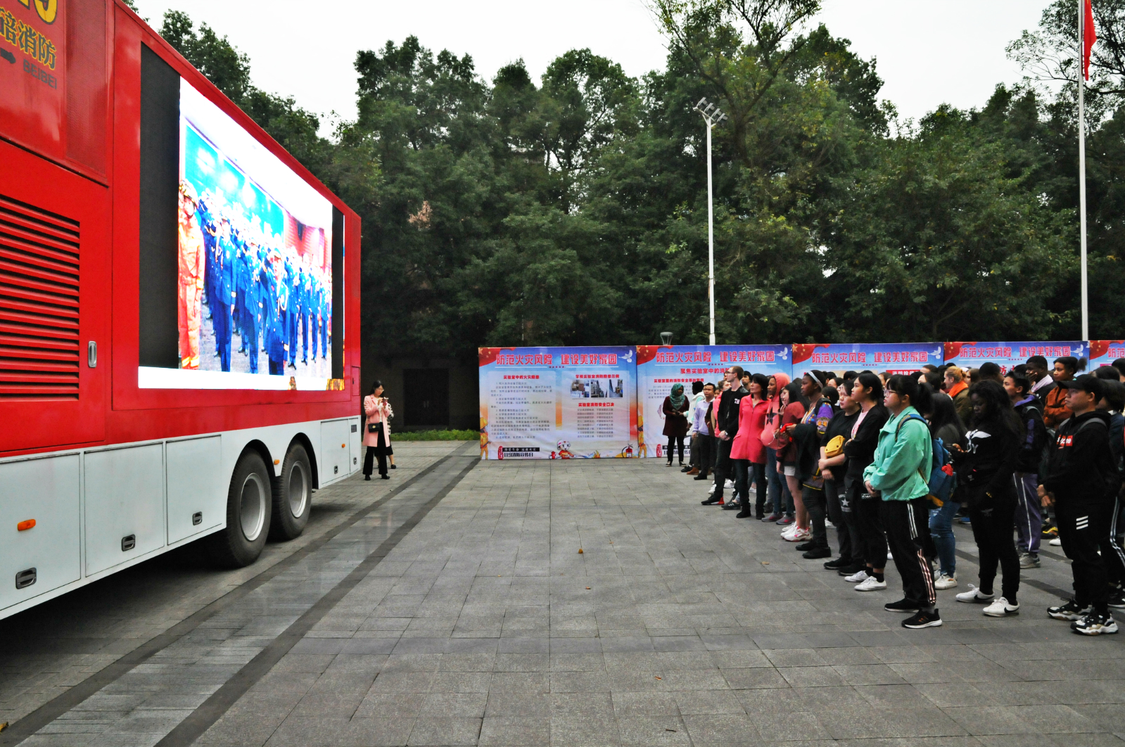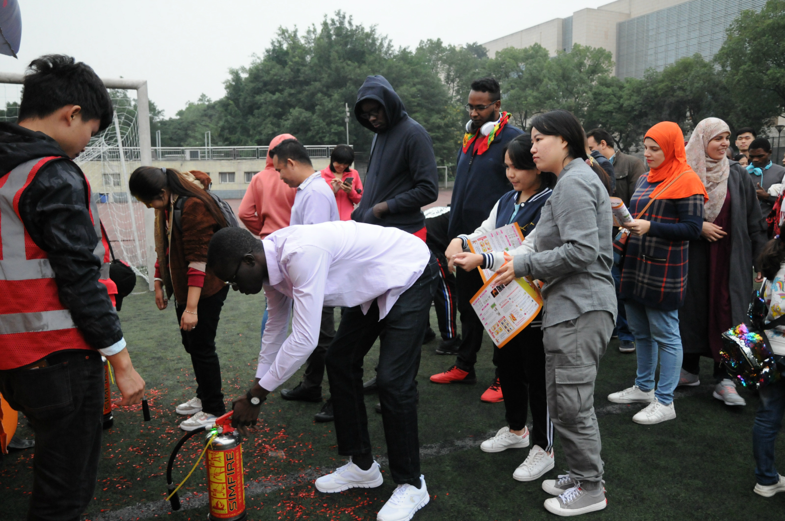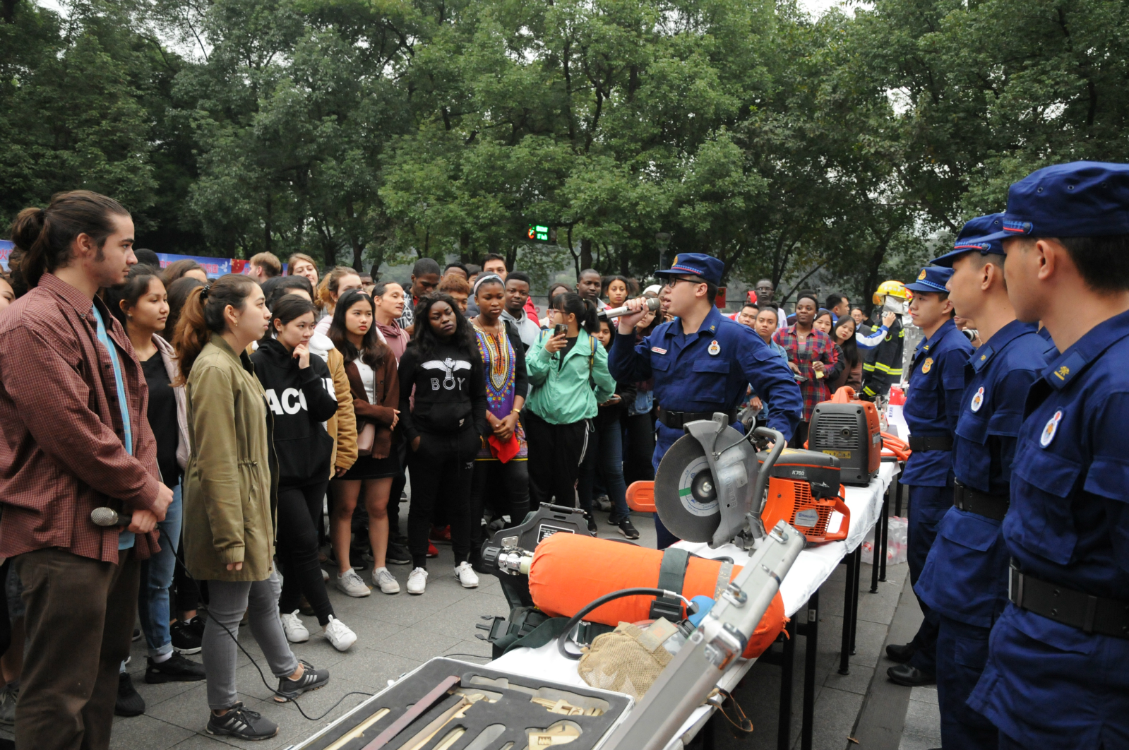 2019年11月9日下午4:30,400余名国际新生在学校第三运动场,参加了由学校党委保卫部/武装部/保卫处主办,重庆市北碚区消防救援支队协办的学校“119消防日”宣传活动暨2019级本科生军训分散训练阶段消防知识技能培训活动。