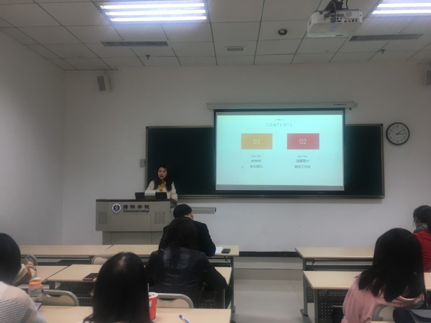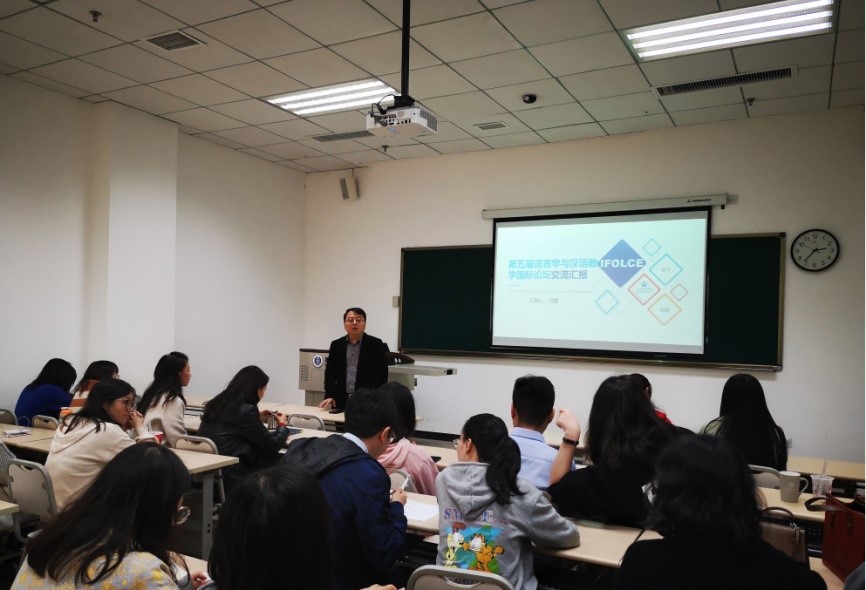 接着,学院教师冯雪和大家交流了参加“第五届语言学与汉语教学国际论坛”的收获。该会议是一个旨在提倡以坚实的语言学研究为基础促进与提升汉语二语教学的国际学术交流平台,由美国、北京和香港八所大学有关同仁共同发起并轮流组织,此次论坛在美国纽约召开。刘乐宁、孙朝奋、储诚志等汉语语言文字学界的知名专家在会上做了精彩的报告;冯雪在论坛上做了题为“泰国学生习得汉语三字组变调模式试验研究”的交流发言,还在论坛期间观摩了普林斯顿大学中文教学工作坊。冯雪表示此行使她增长了见识,拓宽了视野,受益匪浅。