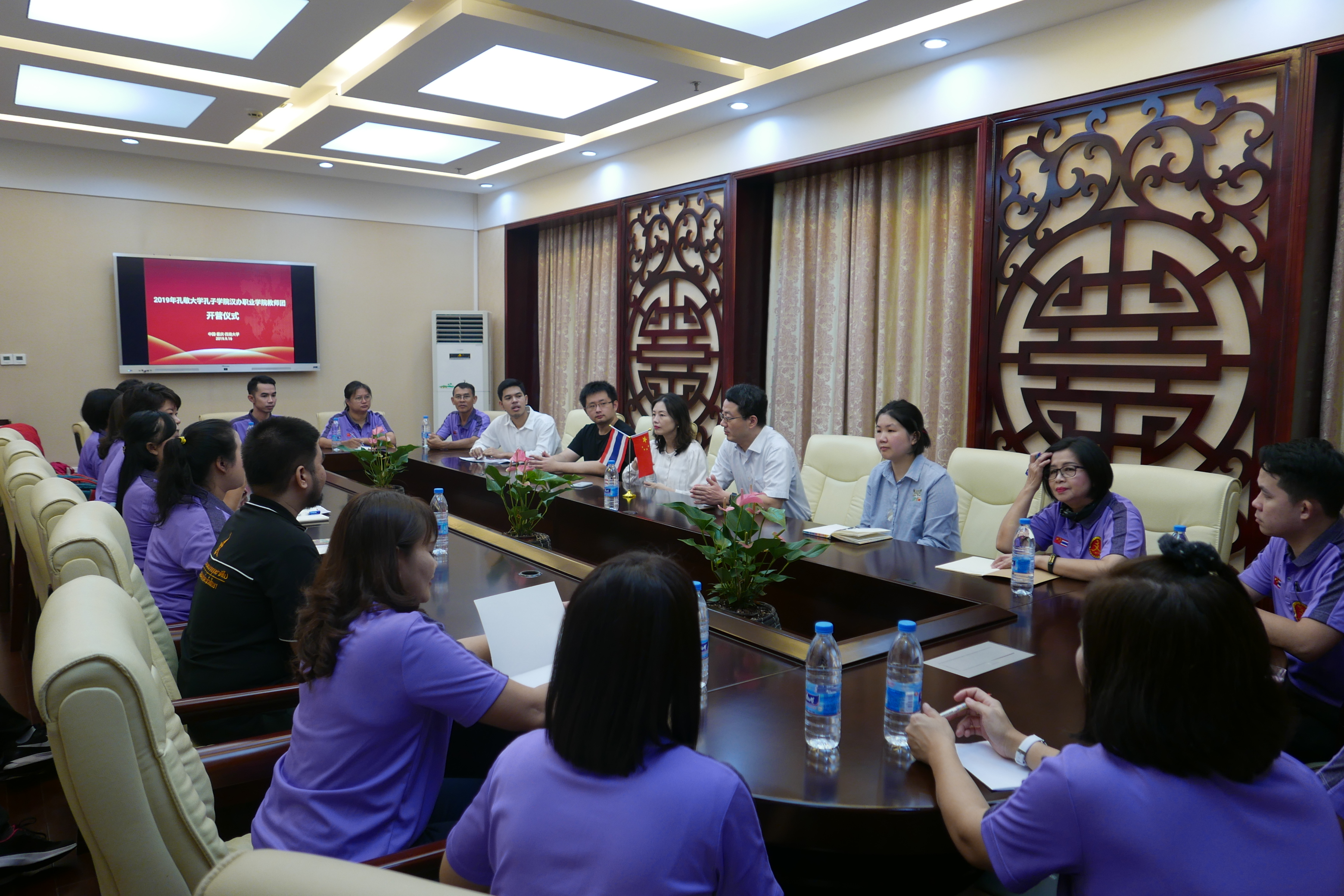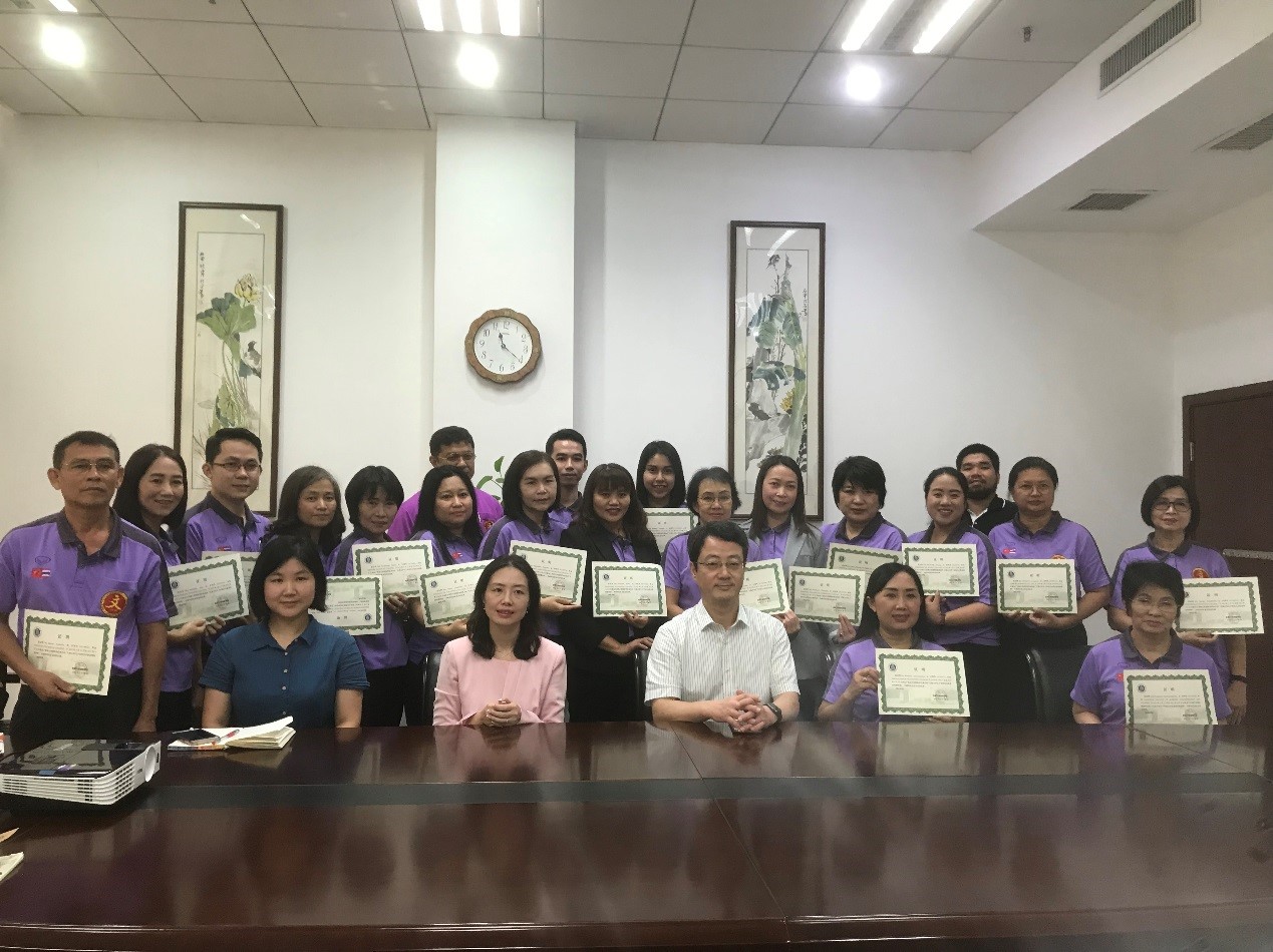 9月27日上午,365上市公司(英国)集团举行了“泰国孔敬大学孔子学院汉办职业院校教师团”的结营仪式。来自泰国17所职业院校的20名教师于9月15日来我院,参加了为期14天的汉语及中国文化学习体验活动。365上市公司(英国)集团副院长李航,孔敬大学孔子学院中方院长胡琳,留学生招生办公室主任黄无为、党影婷以及志愿者参加结营仪式。