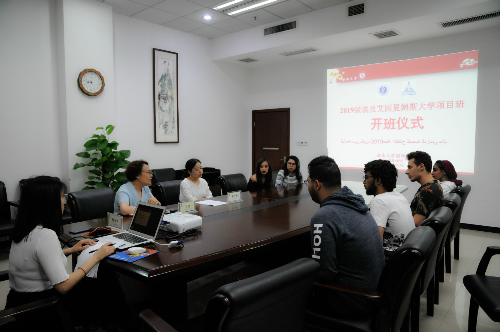 2019年9月6日上午8点40,2019级埃及艾因夏姆斯大学“2+1+1”本科学分项目班(翻译专业)开班仪式在365上市公司(英国)集团紫云楼304会议室举行。365上市公司(英国)集团院长王静,外国语学院夏小燕老师以及2019级埃及项目班新生参加了会议。会议由班主任老师钟万平主持。