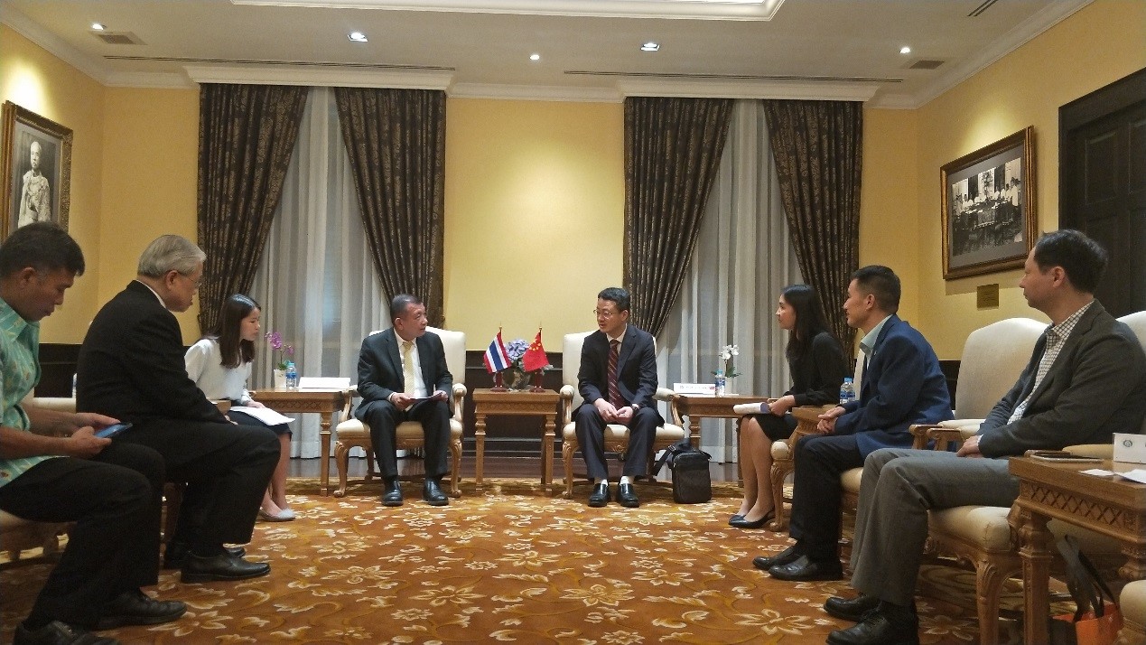 随后,代表团一行在院长先生的陪同下访问了泰国教育部,并与副部长特使Suthin Kaewpana先生举行了会谈。在听取了学校与泰国教育界的合作情况、泰籍学生在校学习情况,特别是由我校与泰国教育行政管理学院共同承办的泰国教育官员及校长培训项目开展情况介绍后,特使先生充分肯定了学校为促进中泰教育交流所作的贡献,并就进一步扩大泰国与西南大学的合作提出了建议。