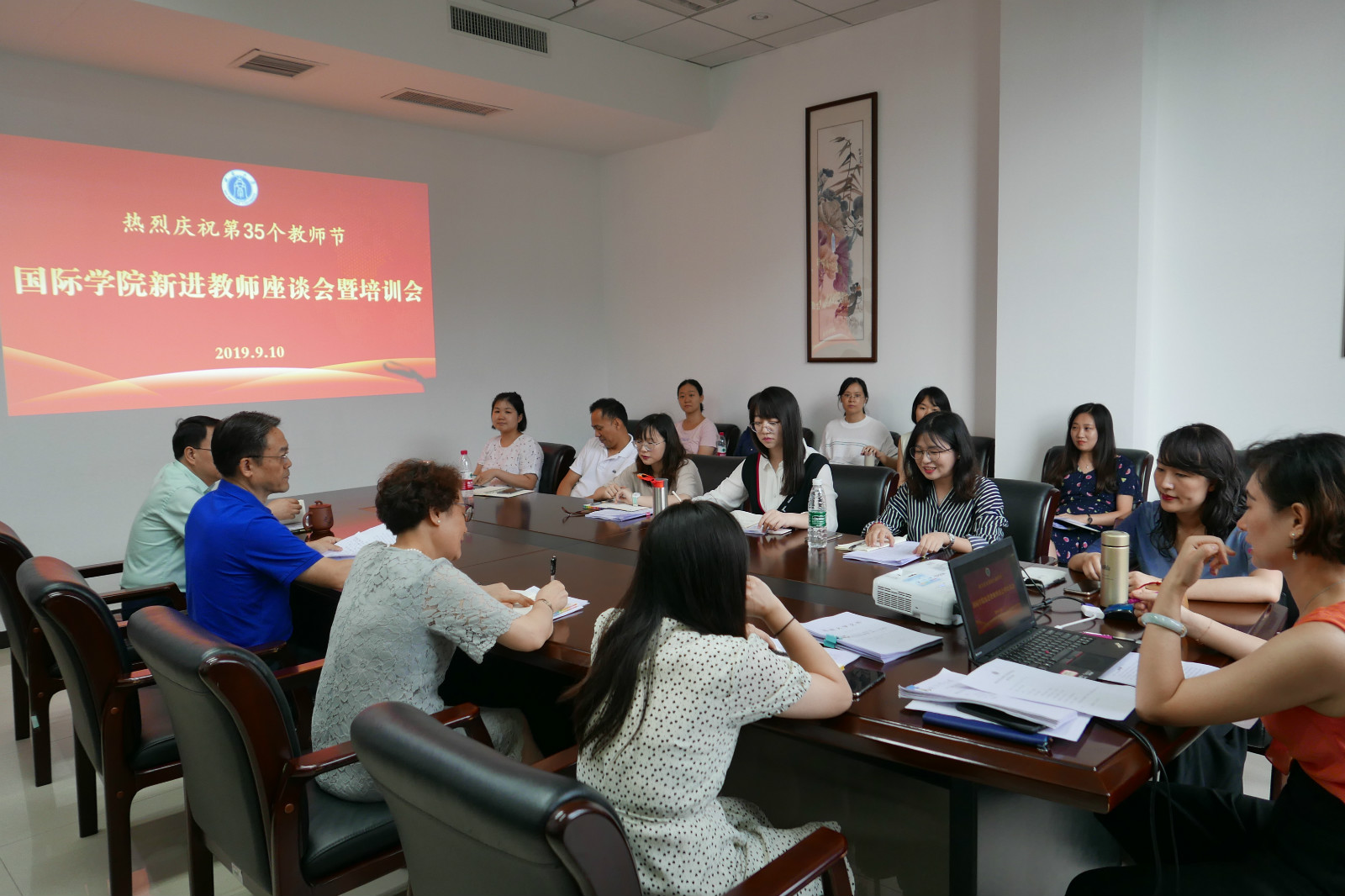 为庆祝第35个教师节,提升新入职教师的教学教研能力,培养一支高素质的青年教师队伍,9月10日下午,365上市公司(英国)集团在紫云楼304会议室召开了庆祝2019年教师节新入职教师座谈会暨培训会。院长王静、党总支书记刘猛、副院长张家政、院长助理耿军,各部门负责人及多名青年教师参加了座谈会。会议由副院长张家政主持。