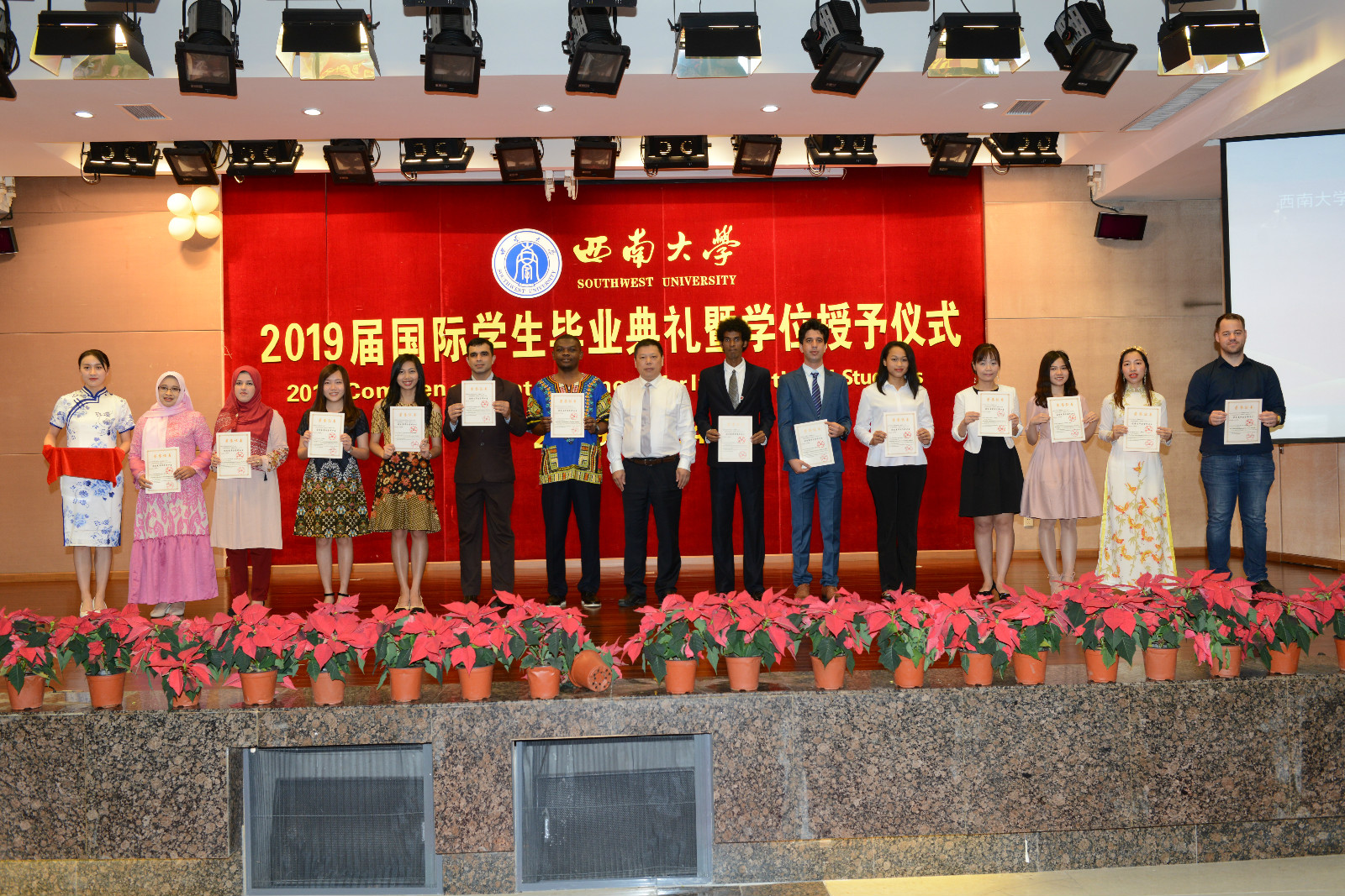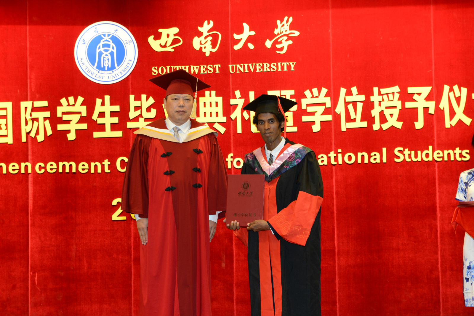 王进军副校长宣读学位授予决定。张卫国校长为博士、硕士、学士学位获得者一一拨穗授位,并颁发学位证书。仪式在庄严的《西南大学校歌》中圆满结束。