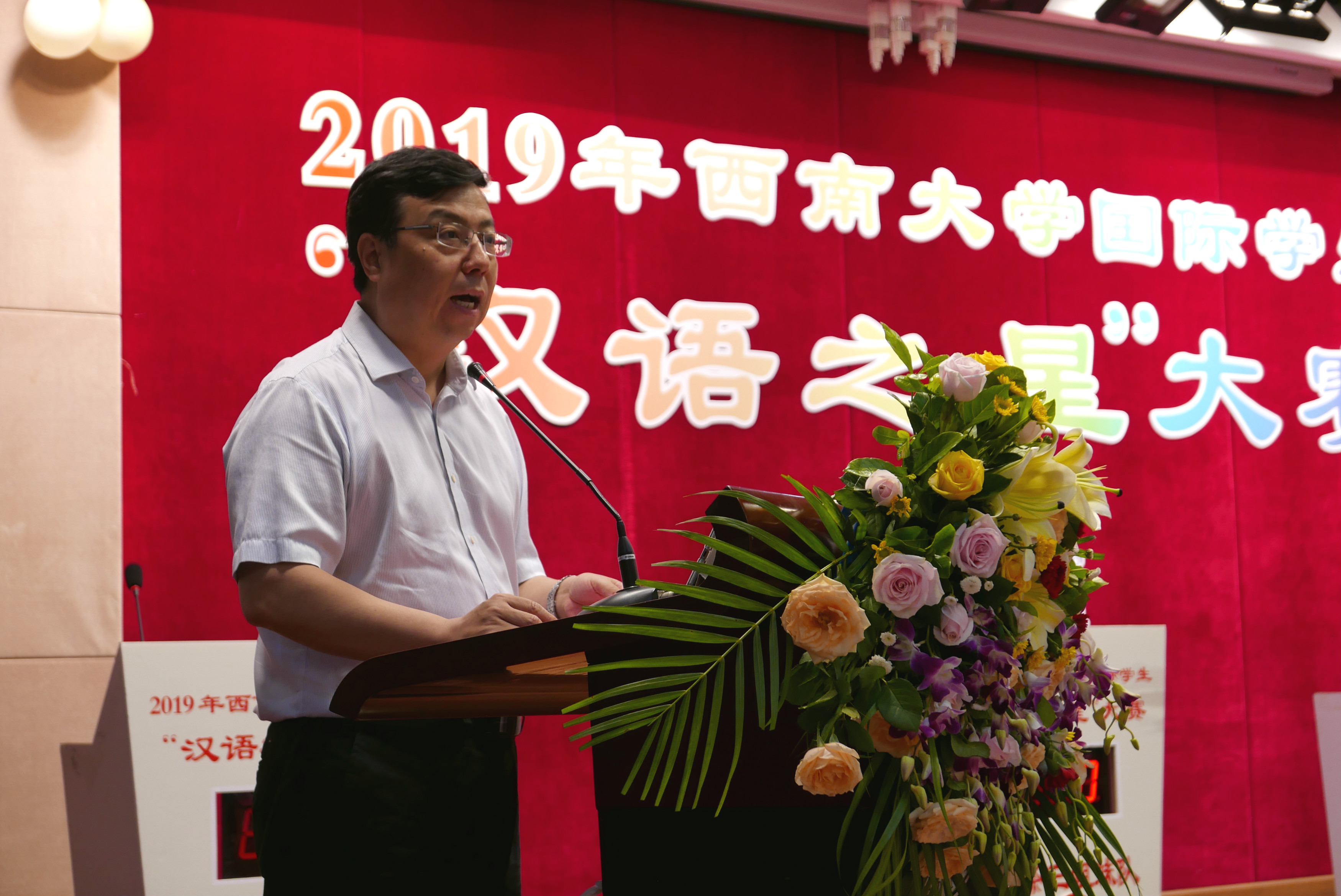 王进军副校长在致辞中表示,国之交在于民相亲,民相亲在于心相通。语言是文化的载体,是沟通心灵的桥梁。国际学生因汉语而结缘于学校,希望大家能在比赛中提高汉语能力、丰富文化知识,并把在学校学习的美好经历带回自己的国家,与家人、朋友们一起分享。