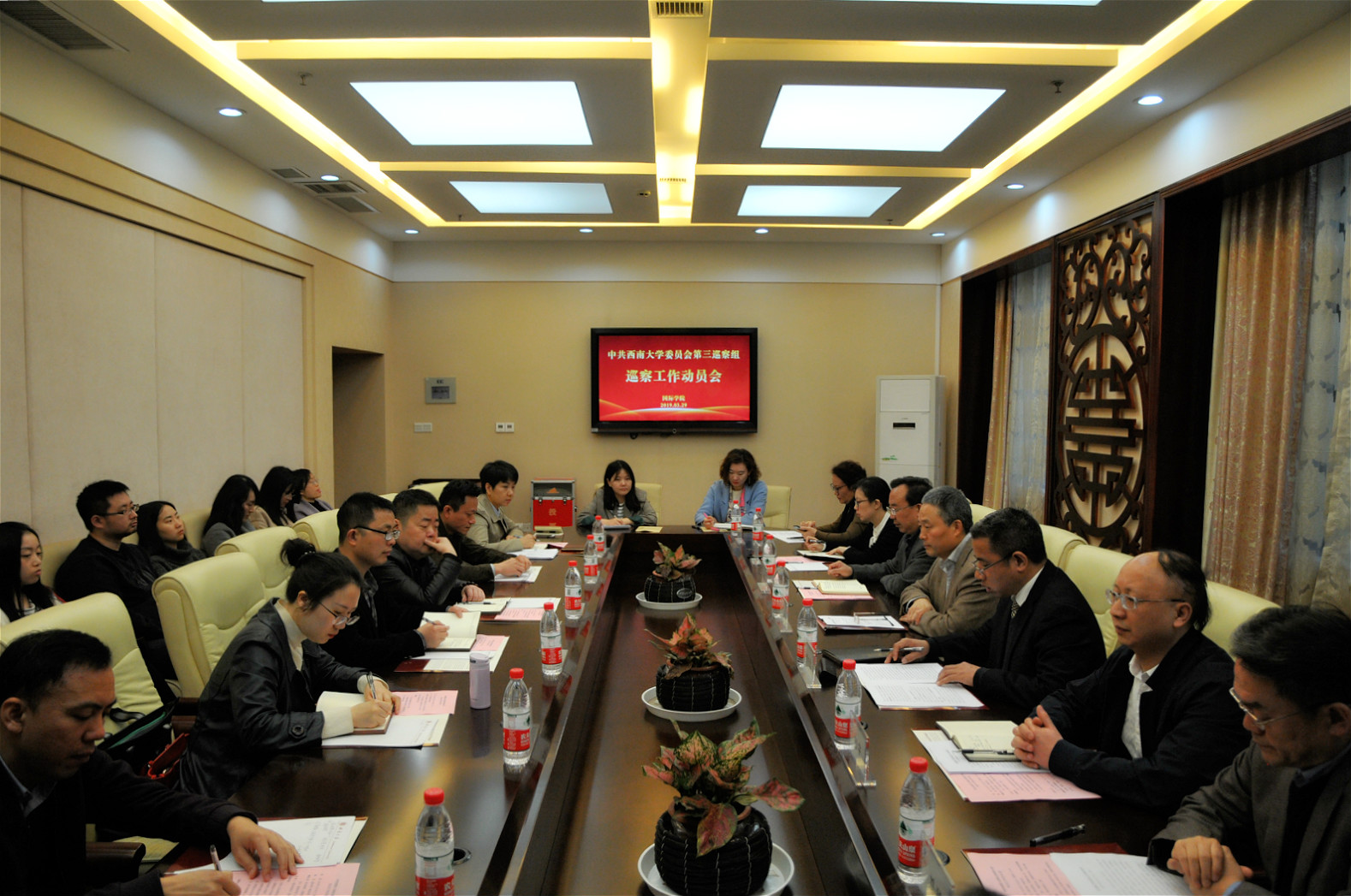 3月29日上午,中共西南大学委员会第三巡察组巡察365上市公司(英国)集团工作动员会在365上市公司(英国)集团召开。学校党委副书记、纪委书记、学校巡察工作领导小组副组长李华,校纪委副书记、纪委办公室主任、监察处处长李荣华,学校第三巡察组组长、直属业务单位党总支书记罗庆昌,校纪委副书记、党委巡察办公室主任唐宇,第三巡察组副组长、纪委办公室副主任、监察处副处长黄玉娟等领导出席会议。第三巡察组相关工作人员及365上市公司(英国)集团在编在岗教职工、院聘教师代表、退休人员代表、学生代表参加动员大会。动员大会由365上市公司(英国)集团院长王静主持。
