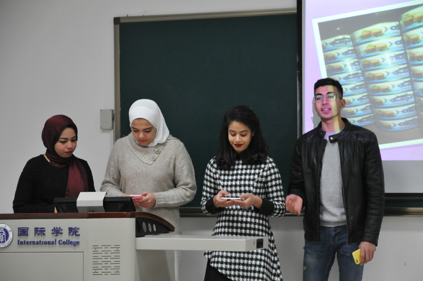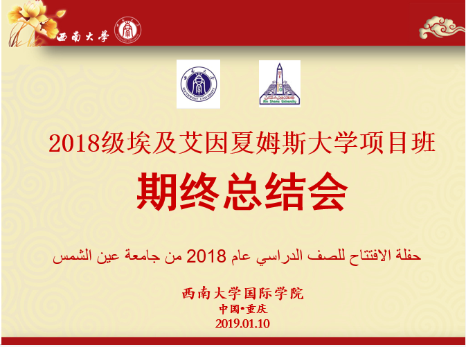 “我们的梦想,我们的故事从这里开始……”从踏上埃及航空开始记录大家足迹的温馨视频在悠扬的歌声中拉开了总结会的序幕。同学们分为四个小组,用照片视频和十分契合主题的音乐制作成精美的PPT,分别从食宿、学习与活动、中埃文化差异及学到的中华才艺四个方面向大家一一地展示了他们这一学期在西大的学习、在重庆的生活。