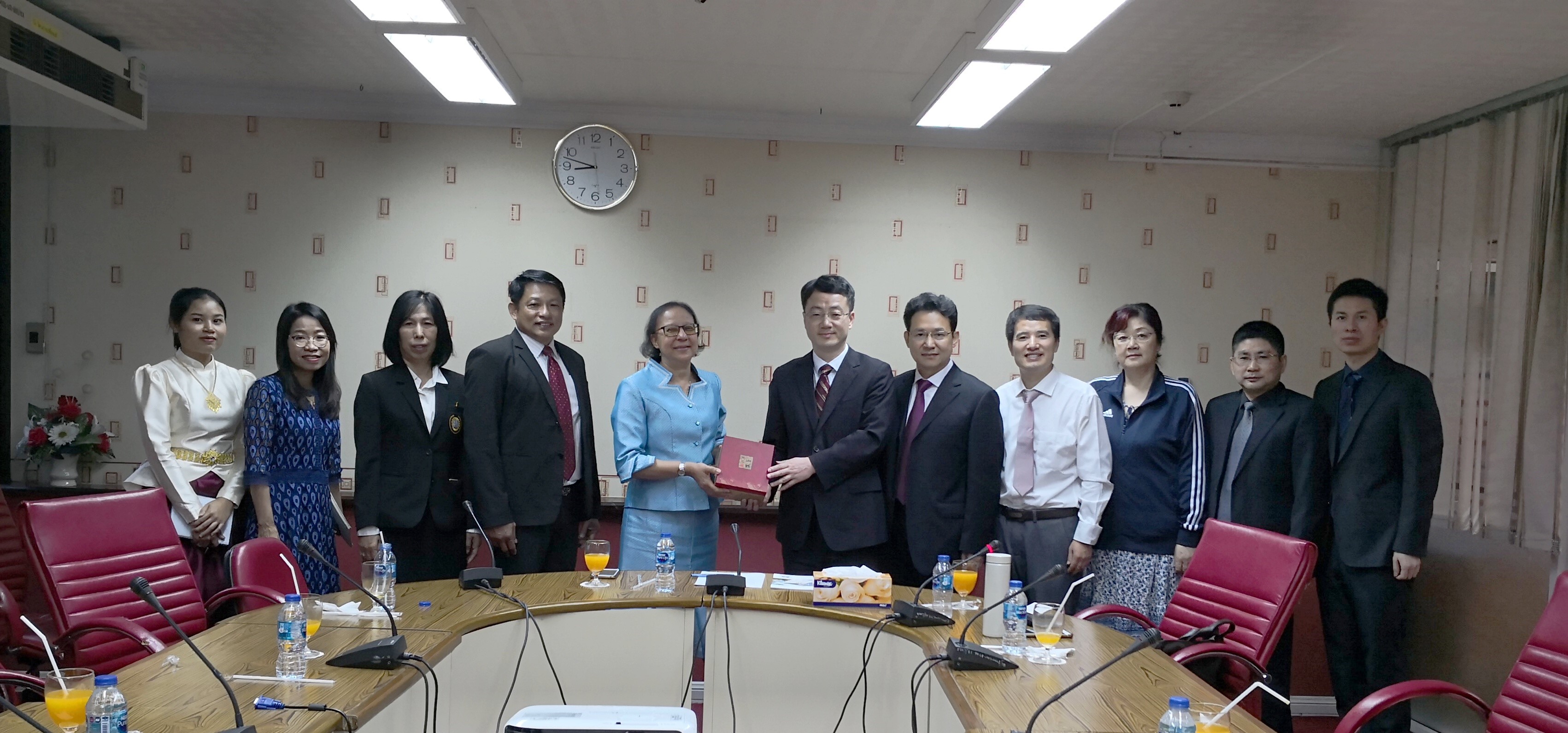 学校代表团访问了泰国教育部,与总督察Duriya Amatawiwat及相关部门负责人举行了会谈。在听取了学校与泰国教育界的合作情况、泰籍学生在校学习情况及由我校承办的泰国教育官员及校长培训项目开展情况的介绍后,总督察女士充分肯定了学校为泰国教育发展所作的贡献,并就进一步扩大泰国与学校的合作提出了建议。