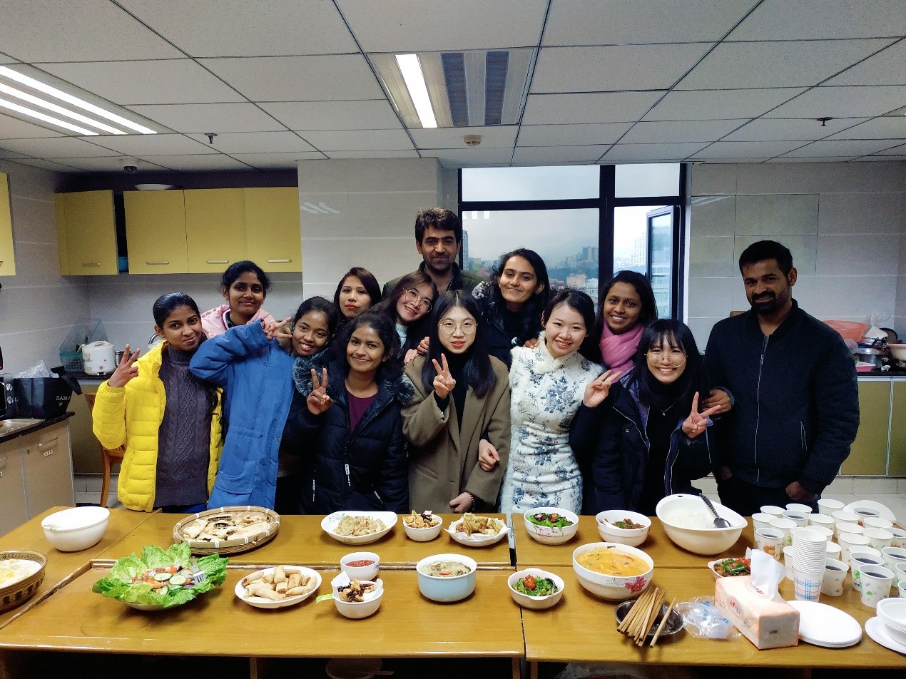 为践行当代中国专题课程之美食专题和欢送即将完成学业回国的2018级CIS一学期学生,12月29日下午,2018级CIS生1班和2班在紫云楼四楼和五楼厨房开展了以“赛出巧手菜 难舍西大情”为主题的班级活动,来自斯里兰卡、泰国、哈萨克斯坦、巴基斯坦、吉尔吉斯斯坦、玻利维亚、秘鲁的7个国家30余名留学生参加了此次做菜比赛的班级活动。