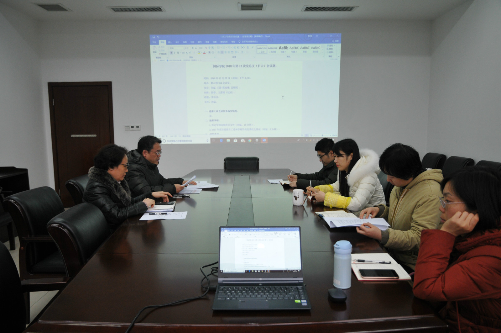 2018年12月27日下午3:30,学院党总支在紫云楼304会议室举行(扩大)会议,研究部署年终考核事宜,总支委员以及教工党支部书记参加会议。会议由党总支书记刘猛同志主持。