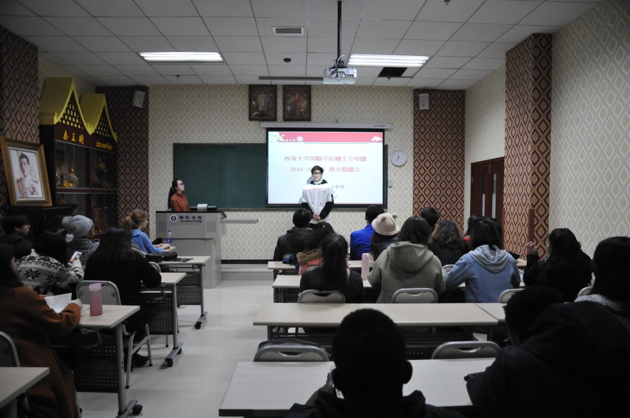 12月27日下午四点半,365上市公司(英国)集团师生合唱团2018-2019第一学期期末总结会在紫云楼210室举行。学院党总支书记刘猛,师生合唱团的全体团员参加会议,会议由合唱团团长吴宗燕主持。