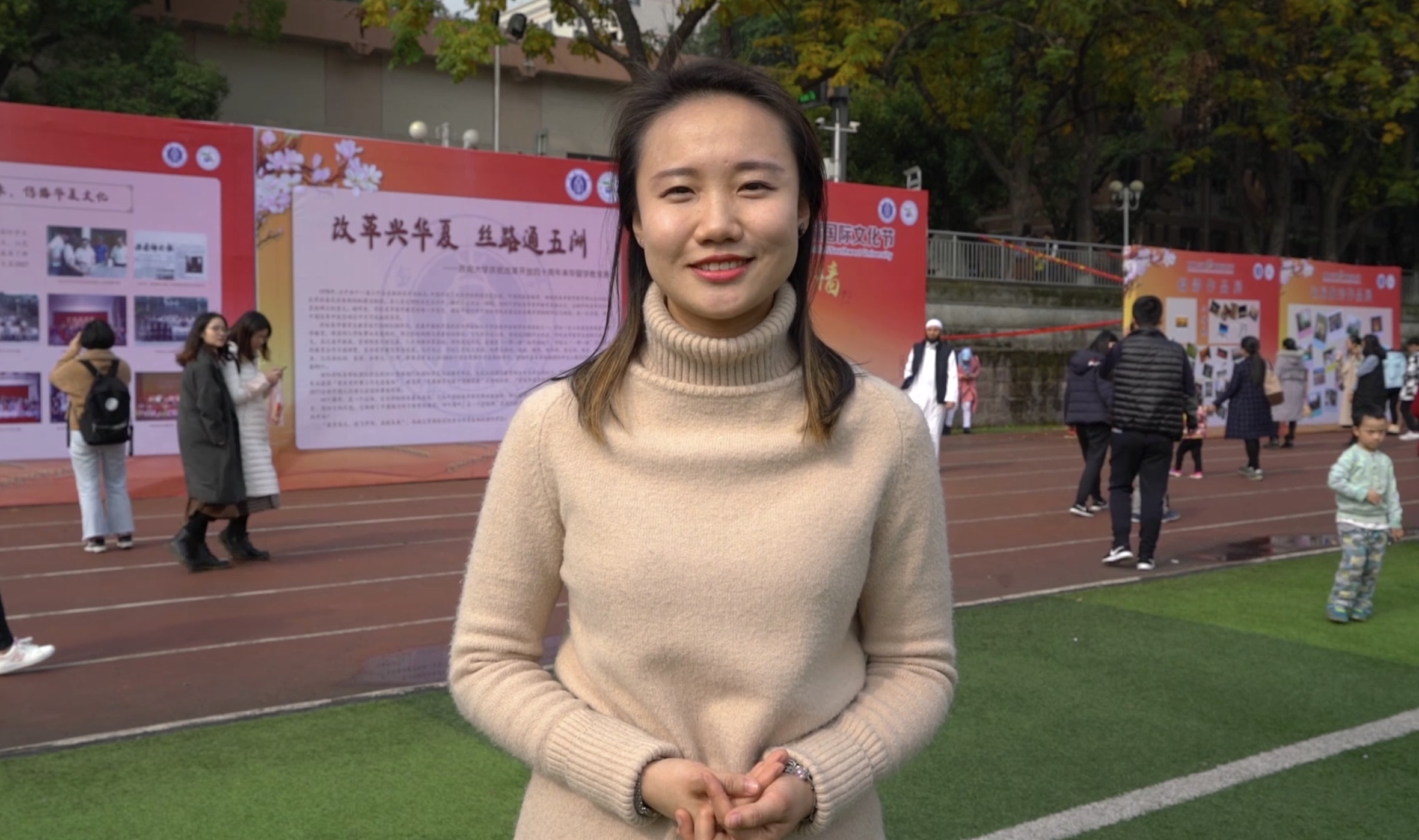 西安交通大学国际教育学院的带队老师范宇晨表示,很高兴能带领留学生表演队参加西南大学的文化节,希望两校加强交流与合作,友谊长存。