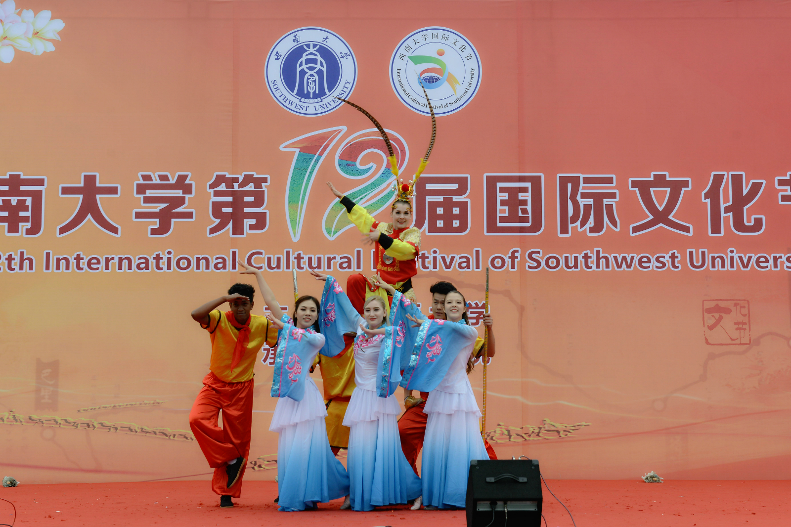 新华网重庆(葛琦)12月1日电:文化节当天,武术、乐队、舞蹈等精彩节目在西南大学轮番上演,来自中国、埃及、蒙古、泰国、马达加斯加等国的学生代表尽情展示歌舞青春的风采。