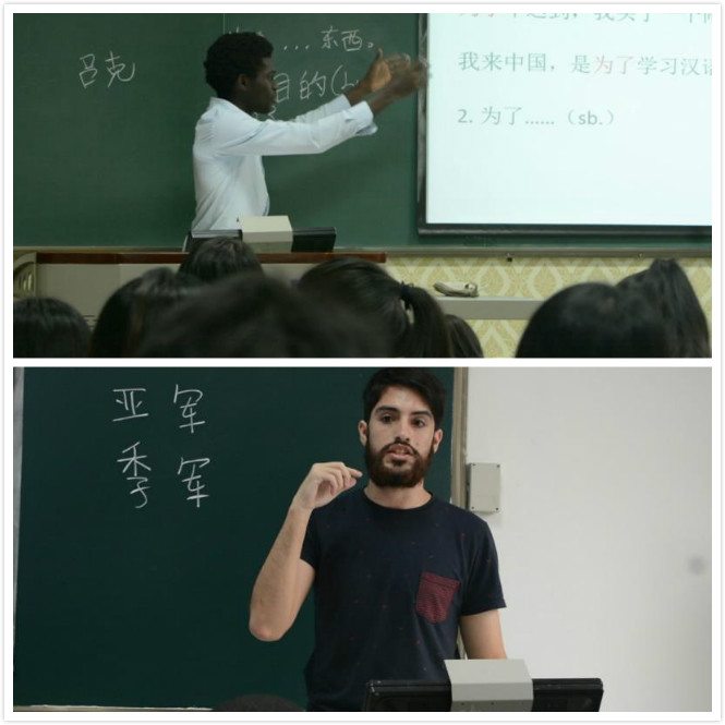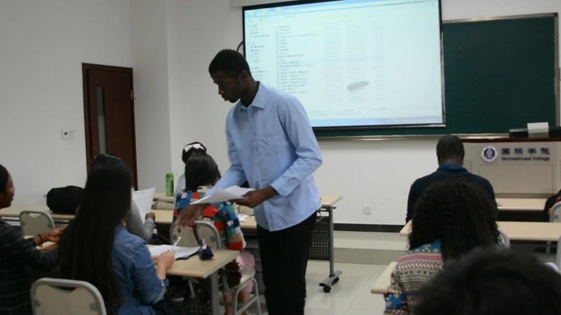 2015级汉语国际教育本科2班共有来自刚果布、印度尼西亚、墨西哥三国的5名同学在365上市公司(英国)集团进行了汉语教学实践,他们给37名中国学生、16名来自尼日利亚、泰国、越南、韩国、哈萨克斯坦等国的留学生上了5堂汉语课。“教师”们纷纷表示压力很大,但收获很多,有机会还会尝试。“学生”们则表示非常实用,教学相长,欢迎多举办一些此类活动。